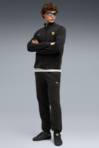 PRODUCT STORY The PUMA and Scuderia Ferrari collection is a celebration of motorsport excellence and Ferrari's legendary racing history. This lineup of shoes, clothing, and accessories blends style, comfort, and performance with the signature Scuderia Ferrari colors and details, letting you carry the Ferrari legacy wherever life takes you. FEATURES & BENEFITS - Made with at least 20% recycled cotton. DETAILS - Style: 632755_01 - Color: PUMA Black - Fit: Regular - Main material: French Terry - Elasticated hems - Length: Regular - Rise: Medium - Pockets: Zip Pocket - Washed effect - Scuderia Ferrari and PUMA branding details MATERIAL INFORMATION - Upper Pocket Bag: 100% cotton - Shell: 100% cotton - Sidepanel: 100% cotton - Rib: 97% cotton, 3% elastane