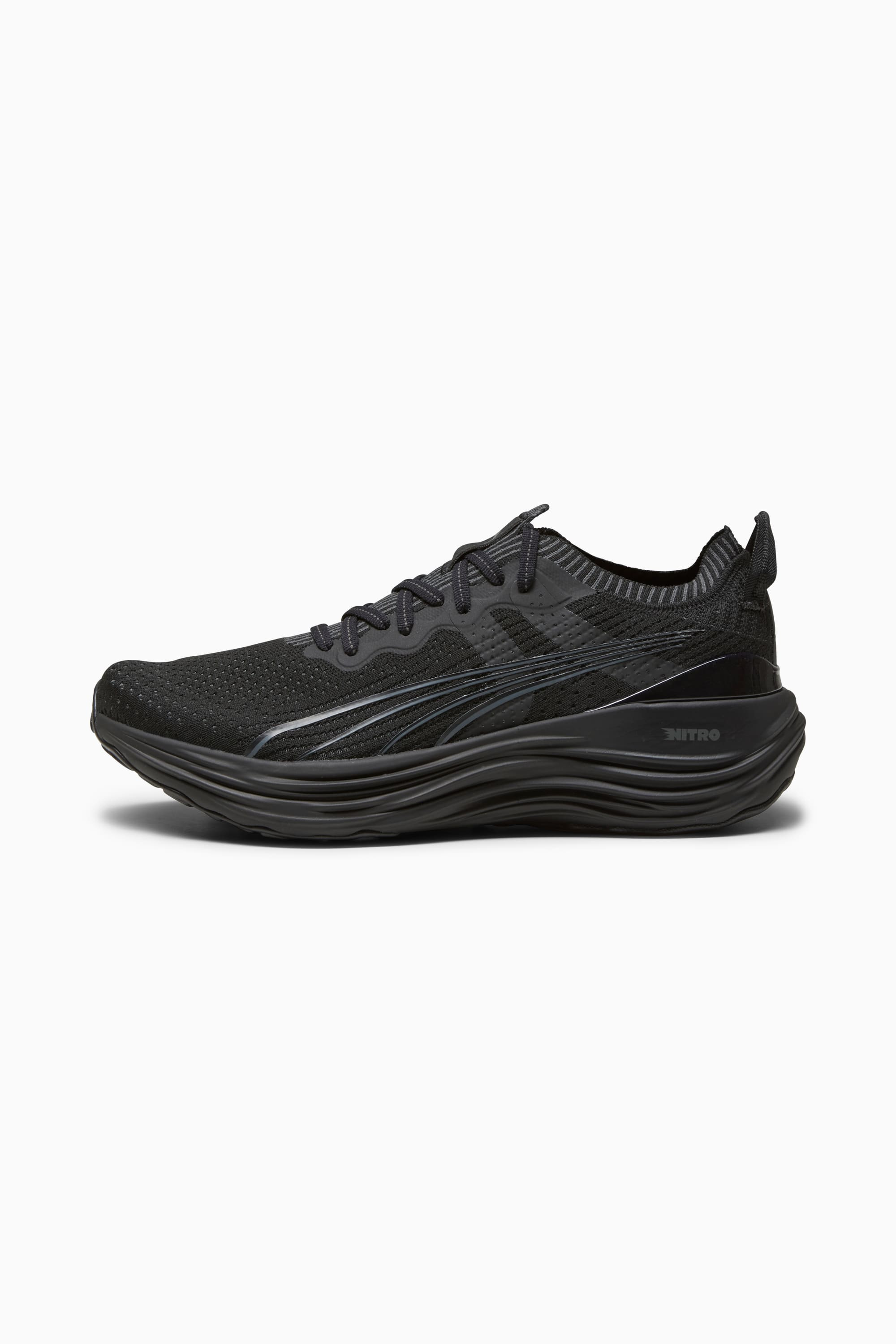 PRODUCT STORY The ForeverRun NITRO™ dawns a new era of support and guidance. Targeting specific foot strikes stages through a combination of the RUNGUIDE SYSTEM features, this innovative model takes support to a new level. This shoe performs for all runners but is specifically designed for those looking for the softness of a full NITROFOAM™ midsole without compromising stability. Comfort and support? This shoe does it all. FEATURES & BENEFITS - NITROFOAM™: Advanced nitrogen-infused foam designed to provide superior responsiveness and cushioning in a lightweight package - PWRTAPE: Targeted upper reinforcement for support and durability - RUNGUIDE: Firm density guide rail designed to keep your foot aligned and centred through each stride - PUMAGRIP: Durable performance rubber compound designed for all-surface traction DETAILS - Style: 379139_01 - Color: PUMA Black-Shadow Gray - Engineered knit upper - Asymmetrical heel counter - Flared rubber outsole - Cushioning level: Max - Heel-to-toe drop: 7.5mm - Best for overpronators - Best for frequent runners - Low boot - Lace closure MATERIAL INFORMATION - Midsole: 100% Synthetic - Sockliner: 100% Textile - Outsole: 100% Rubber - Upper: 79% Textile, 21% Synthetic - Lining: 100% Textile