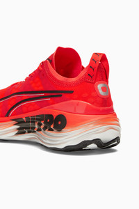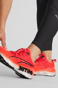 PRODUCT STORY The ForeverRUN NITRO™ for women dawns a new era of support and guidance for all runners, providing the softness of a full NITROFOAM™ midsole without compromising stability. It features a newly developed NITROFOAM™ midsole with two different densities – a softer core with a firmer rim – and an asymmetrical heel counter to hold the foot in place through every stride. The theme also continues on the outsole, with a wider medial rubber segment that stabilises late-stage pronation. In short, it's the perfect blend of support and cushion. FEATURES & BENEFITS - NITRO™: Advanced nitrogen-infused foam designed to provide superior responsiveness and cushioning in a lightweight package - PWRTAPE: Targeted upper reinforcement for support and durability - RUNGUIDE: Firm density guide rail designed to keep your foot aligned and centred through each stride - PUMAGRIP: Durable performance rubber compound designed for all-surface traction DETAILS - Style: 309758_02 - Color: Cherry Tomato-PUMA Black - Engineered mesh upper - Moulded heel technology - Flared rubber outsole - Cushioning level: Max - Shoe pronation: Overpronation - Heel-to-toe drop: 10mm MATERIAL INFORMATION - Midsole: 100% Synthetic - Sockliner: 100% Textile - Outsole: 100% Rubber - Upper: 63% Textile, 37% Synthetic - Lining: 100% Textile