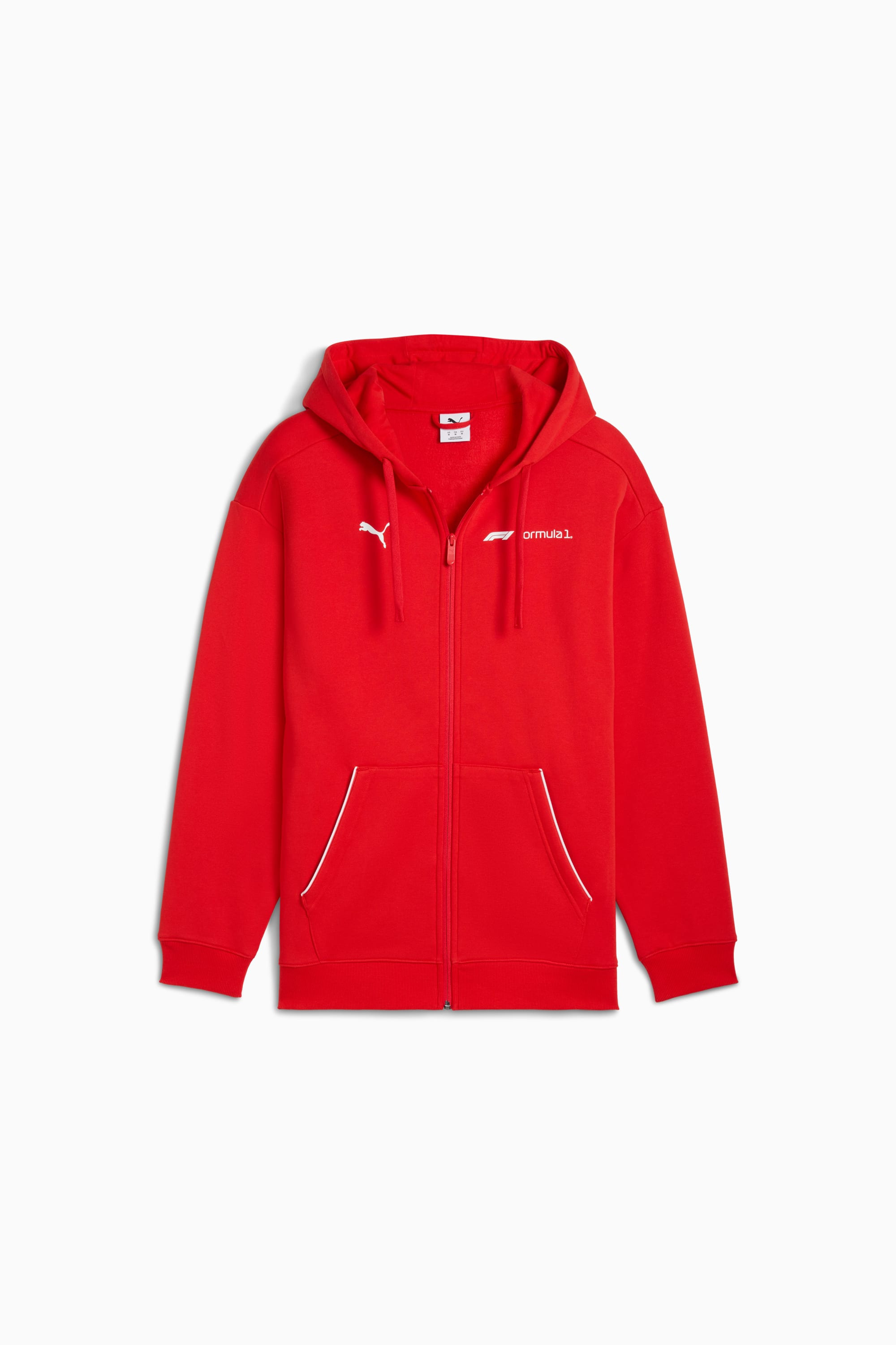 PRODUCT STORY These pieces are built for true motorsport enthusiasts, combining premium materials, dynamic design, and iconic team branding. Inspired by the speed and energy of Formula 1®, they blend performance and heritage, bringing the excitement of the track to everyday wear. Whether you're in the stands or on the streets, represent your passion for F1® with the ultimate race-day essentials. FEATURES & BENEFITS - Made with at least 50% recycled materials. DETAILS - Style: 632653_03 - Color: Pop Red - Fit: Relaxed - Main material type: Fleece - Closure: Full-zip - Long sleeves - Hooded - Regular length - Kangaroo pocket - Large Formula 1® graphic on the back MATERIAL INFORMATION - Hood Lining: 100% cotton - Trimming: 65% nylon, 28% polyester, 7% elastane - Shell: 66% cotton, 34% polyester - Rib: 97% cotton, 3% elastane