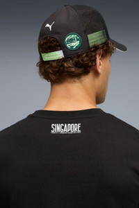 PRODUCT STORY Show your motorsport pride with this structured trucker cap. Featuring a pre-curved visor, bold F1 graphics, and embroidered PUMA Cat details, it's designed for race-day vibes and everyday style. With a pinch front and woven side panels, this cap is your ultimate nod to Formula 1 energy. DETAILS - Style: 026677_01 - Color: PUMA Black - Snapback double row with border - Pre-curved brim - HD printed Singapore F1® Singapore Grand Prix 2025 on front panel - Formula 1® Woven label on left panel - 5 panels, with pinch, embroidered eyelets MATERIAL INFORMATION - Lining: 100% polyester - Shell: 100% polyester - Sidepanel: 100% polyamide - Back Panel: 100% polyester - Front Lining: 100% polyester - Under Visor: 100% polyester