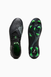 PRODUCT STORY Playmakers, unleash your creativity on firm soccer ground with the FUTURE 8 ULTIMATE. These game-changing cleats feature a high-density mesh for ball control, FLEXGILITY outsole for agile movement, and the option to play with or without laces, so you can move between the lines and create beyond limits. PUMA's ultimate fit and performance await. FEATURES & BENEFITS - Made with at least 20% recycled materials in the upper - PWRTAPE: Targeted upper reinforcement for support and durability - FUZIONFIT: wraps the foot like a second skin, offering a snug, cushioned fit without limiting movement DETAILS - Style: 108138_02 - Color: PUMA Black-Cool Light Gray-Fluo Green - Textured high-density mesh with GripControl Pro finish - PWRTAPE across the midfoot provides ultimate lockdown and stability for enhanced control - Regular to wide fit - FLEXGILITY outsole is designed for quick pivots and agile 360-degree movement needed to outmaneuver the opposition - FG: Suitable for use on firm natural surfaces MATERIAL INFORMATION - Sockliner: 100% Textile - Outsole: 100% Synthetic - Upper: 82.67% Synthetic, 17.33% Textile - Lining: 62.59% Textile, 37.41% Synthetic
