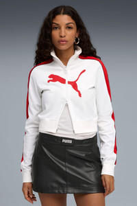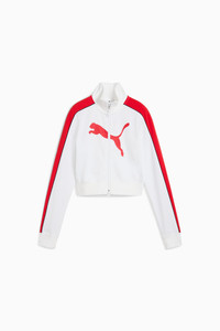 PRODUCT STORY This is the FUTURE.PUMA.ARCHIVE. This street-inspired collection blends the spirit of our past with the limitless possibilities of our future. Retro yet forward-thinking, these styles are designed to make a statement. FEATURES & BENEFITS - Made with at least 30% recycled materials. DETAILS - Style: 632123_02 - Color: PUMA White-For All Time Red - Fit: Slim - Neck: Stand up collar - Long sleeves - Fastener: Full zip with two-way zipper - Length: Short jacket - Ribbed cuffs and waistband - Pockets: Zipped side pockets MATERIAL INFORMATION - Shell: 69% polyester, 24% viscose, 7% elastane - Rib: 96% cotton, 4% elastane