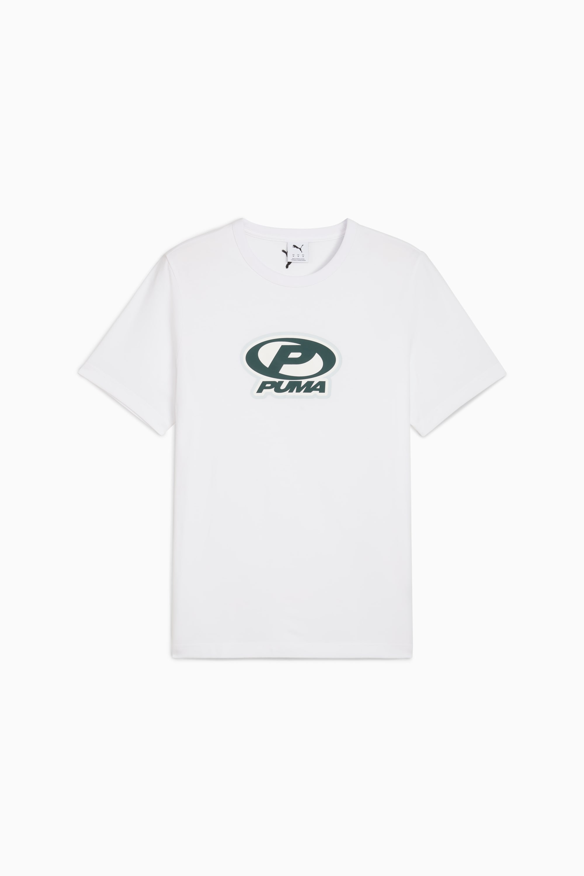 PRODUCT STORY This is the FUTURE.PUMA.ARCHIVE. This street-inspired collection blends the spirit of our past with the limitless possibilities of our future. Retro yet forward-thinking, these styles are designed to make a statement. FEATURES & BENEFITS - Made with at least 20% recycled cotton. DETAILS - Style: 632076_52 - Color: PUMA White-Mint Melt - Fit: Regular - Main material: Single jersey - Neck: Crew neck - Short sleeves - Length: Regular MATERIAL INFORMATION - Shell: 100% cotton - Rib: 80% cotton, 20% polyester