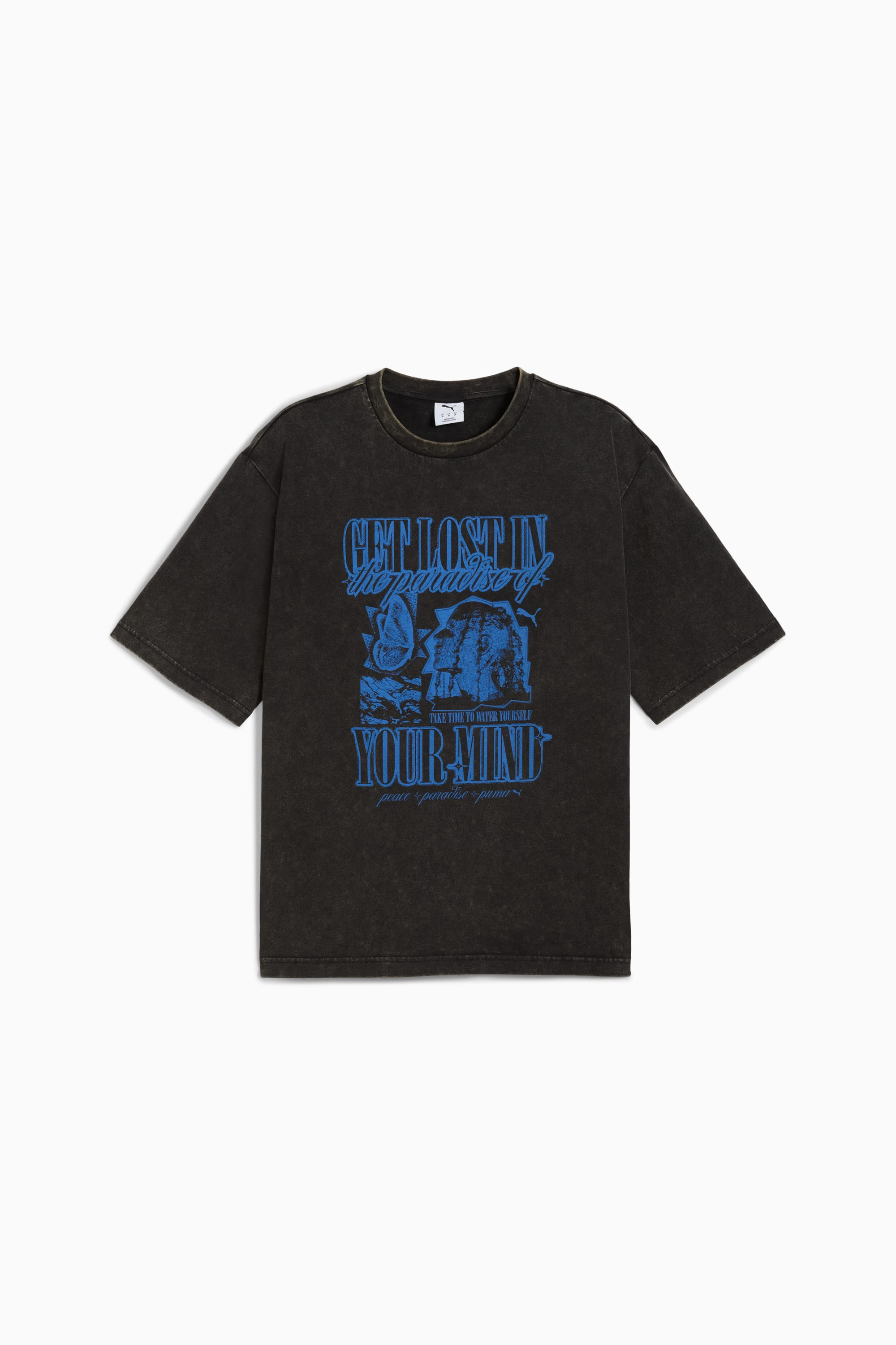 PRODUCT STORY PUMA's collection of Graphic tees combines creative graphics with simple style, creating comfortable pieces that stand out. From abstract patterns to iconic logos, each design adds a unique touch. No matter where your day takes you, these graphics enhance your look with effortless cool. FEATURES & BENEFITS - Made with at least 20% recycled cotton. DETAILS - Style: 632115_01 - Color: PUMA Black - Fit: Boxy - Main material: Single jersey - Neck: Crew neck - Short sleeves - Length: Regular MATERIAL INFORMATION - Shell: 100% cotton - Rib: 71% cotton, 29% polyester