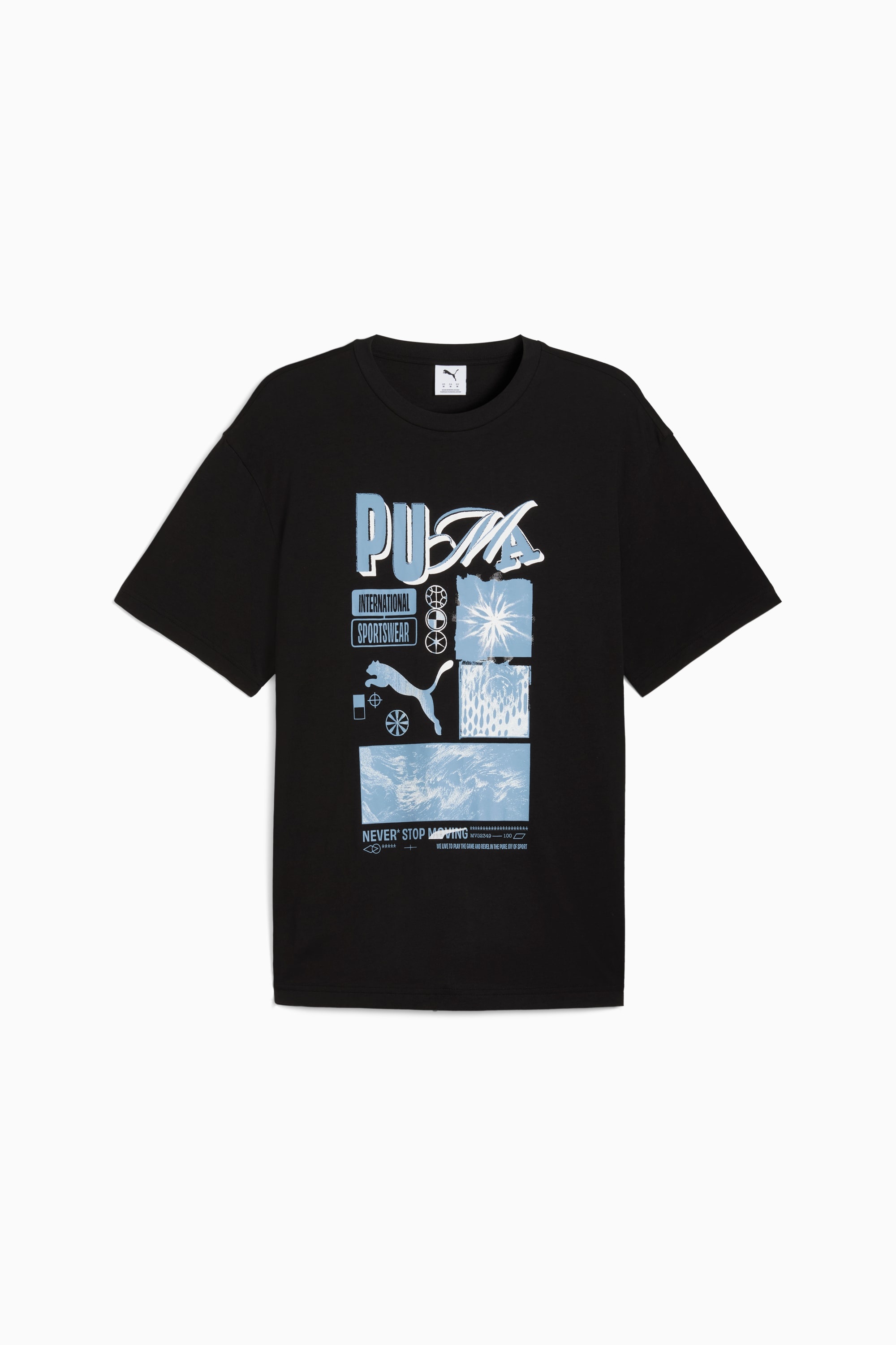 PRODUCT STORY PUMA's collection of graphic tees blends creative graphics with simple style, creating comfortable pieces that make a statement. From abstract patterns to iconic logos, each design adds a unique twist. No matter where your day takes you, these graphics enhance your look with effortless cool. FEATURES & BENEFITS - Made with at least 20% recycled cotton. DETAILS - Style: 632116_01 - Color: PUMA Black - Fit: Relaxed - Main material: Single jersey - Neck: Crew neck - Short sleeves - Length: Regular