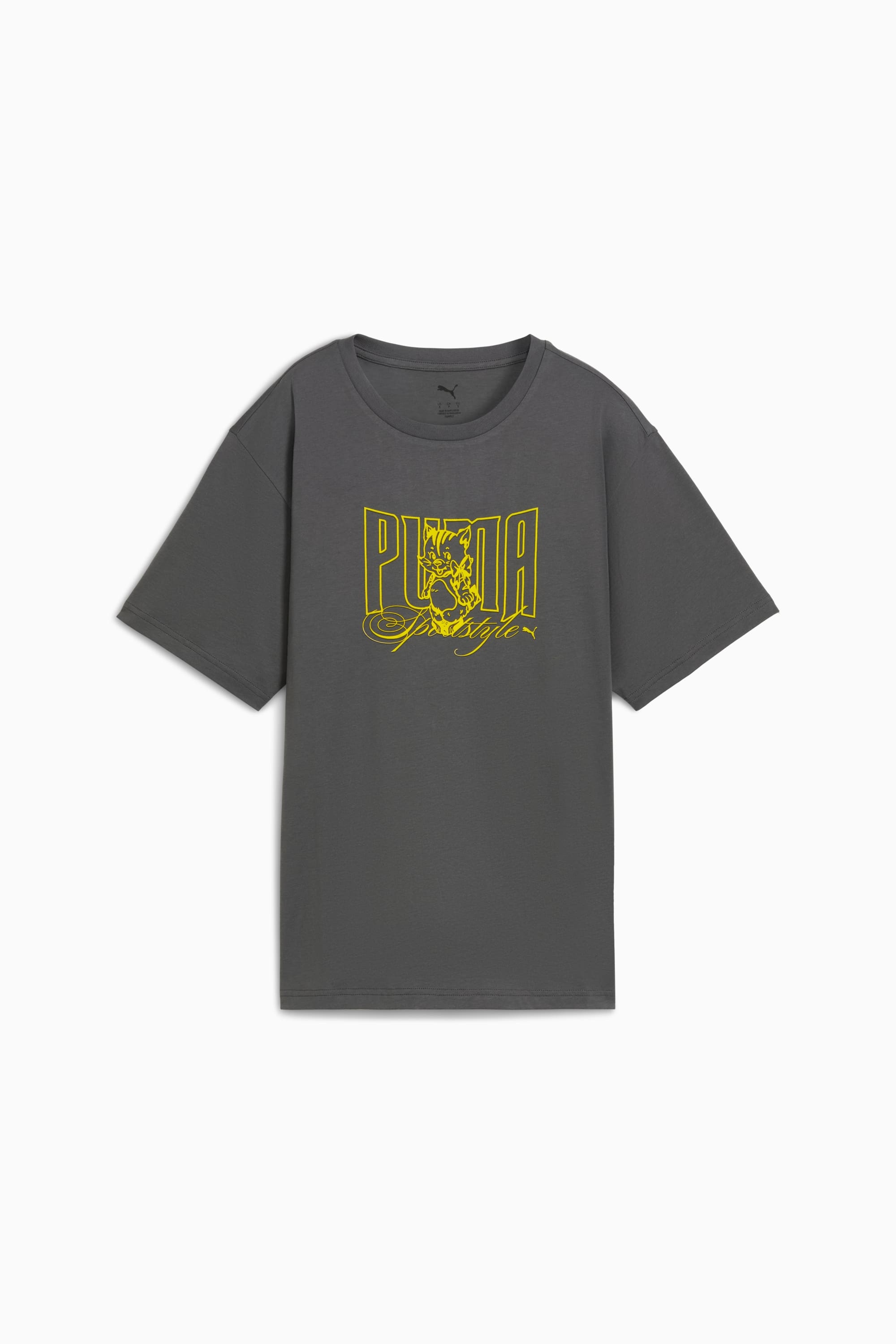 PRODUCT STORY PUMA's collection of Graphic tees combines bold graphics with clean style, creating comfortable pieces that stand out. From abstract patterns to iconic logos, each design adds a unique touch. Wherever your day leads, these graphics bring a fresh, effortless vibe to your look. FEATURES & BENEFITS - Made with at least 20% recycled cotton. DETAILS - Style: 633384_44 - Color: Dusky Gray - Fit: Relaxed - Main material: Single jersey - Neck: Crew neck - Short sleeves - Length: Regular