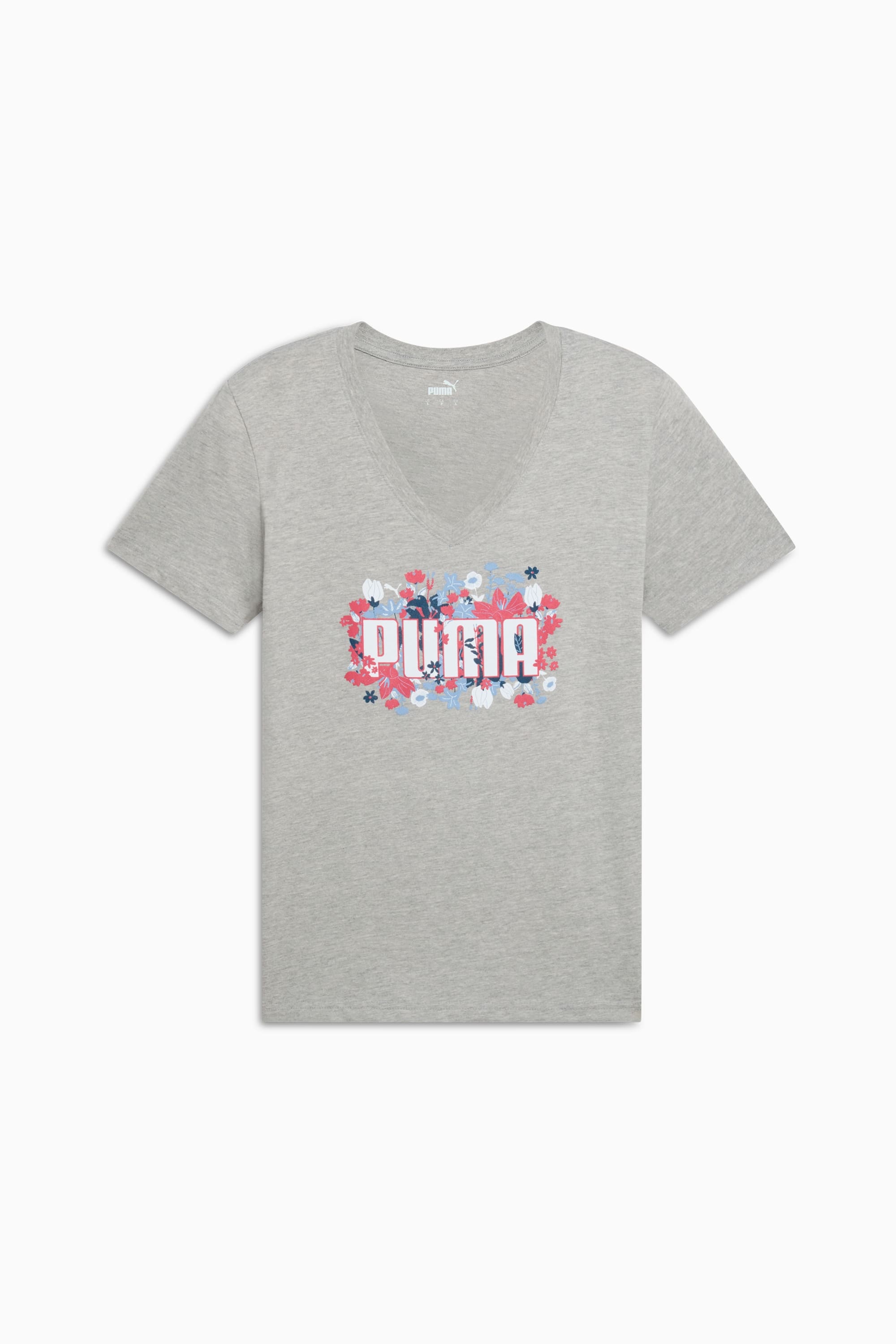PRODUCT STORY Round out your wardrobe in PUMA style with this 100% cotton tee, showcasing a floral pattern. This tee's comfort fit means it's the perfect choice for a laid-back day at home, or for hitting the street and soaking up the vibes. DETAILS - Style: 688876_04 - Color: Light Gray Heather - 100% cotton - Crew neck - Comfort fit - Regular length - PUMA branding details