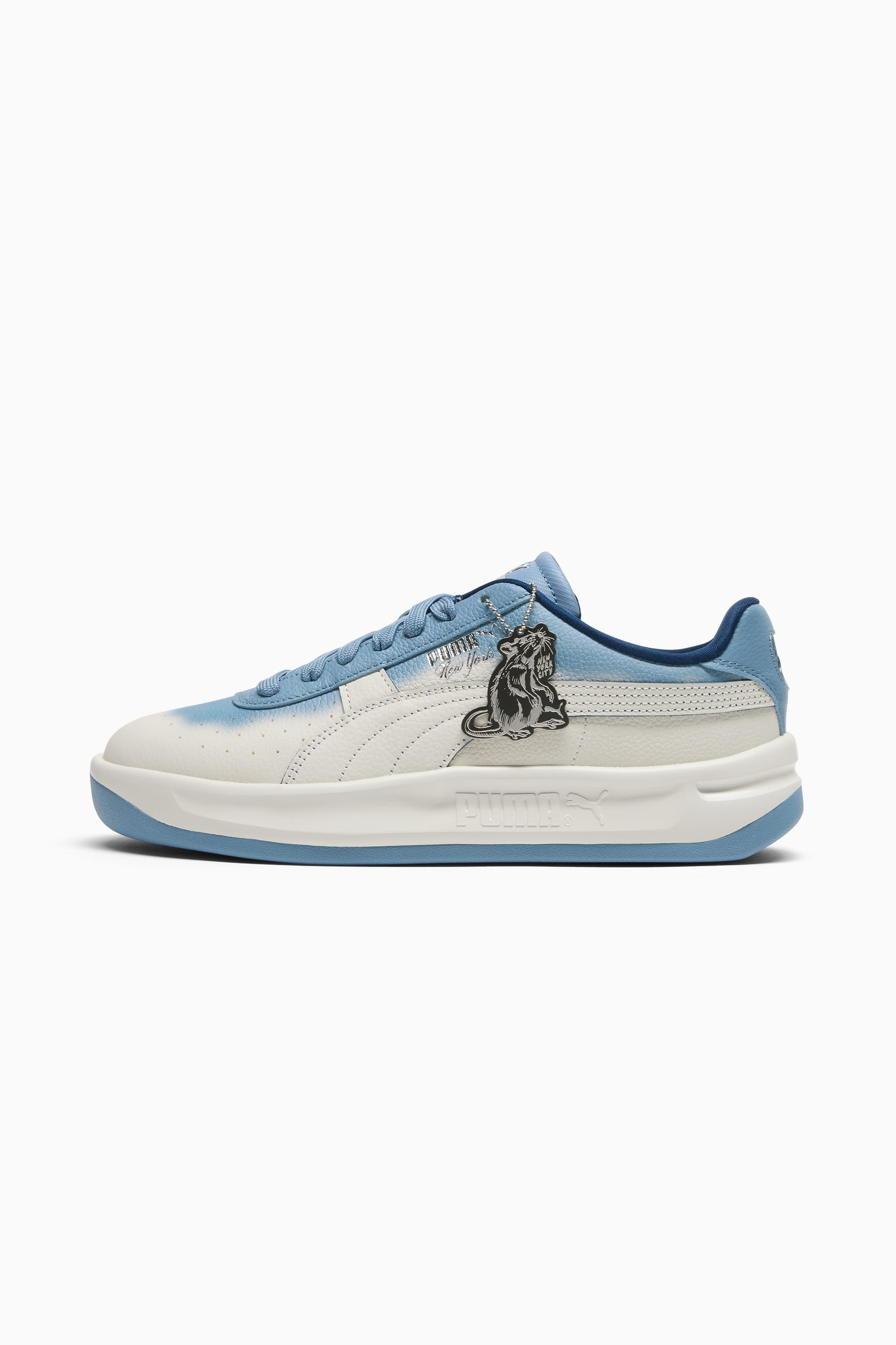 PRODUCT STORY Back in the '70s, Argentinian tennis player Guillermo Vilas smashed through winning streaks. In the '80s, we created his signature shoe, the GV Special. It pays tribute to its namesake with a classic court-meets-street aesthetic that's iconic to this day. DETAILS - Style: 404536_01 - Color: Vapor Gray-Cool Blue-Persian Blue - Width: Regular - Toe Type: Rounded - Fastener: Laces - Main material of upper: Leather - Heel type: Platform - Lining: Textile - Outsole: Rubber MATERIAL INFORMATION - Sockliner: 100% Textile - Outsole: 100% Rubber - Upper: 98.88% Leather - cow, 1.12% Synthetic - Lining: 100% Textile