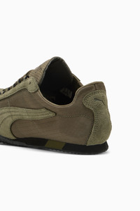 PRODUCT STORY With a design inspired by the iconic 2000s running spike the PUMA Harambee, the H-Street is a timeless icon, fusing sprinting heritage with street DNA. It harks back to the golden era of the 2000s where track and field crossed over into streetwear. This season, H-Street makes its return from the archives with its lightweight upper, low-profile silhouette, and street legacy still intact. DETAILS - Style: 405085_01 - Color: Loden Green-PUMA Black - Regular fit - Rounded toe - Lace closure - Suede tongue - Geometric print on the upper - Heel type: Flat - Outsole: Rubber MATERIAL INFORMATION - Sockliner: 100% Textile - Outsole: 100% Rubber - Upper: 67.89% Textile, 32.11% Leather - cow - Lining: 100% Textile