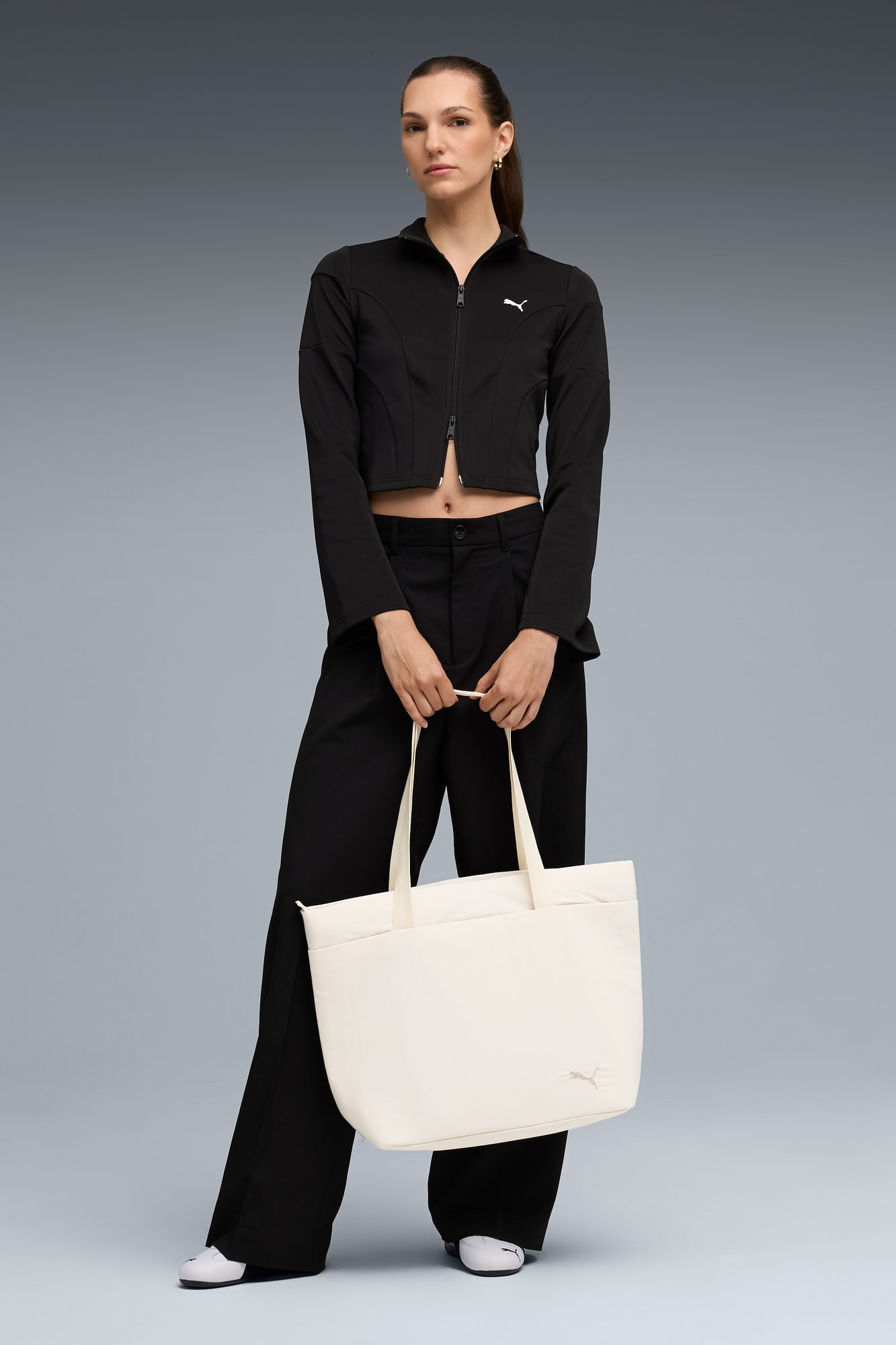 PRODUCT STORY PUMA's HER collection is all about empowering style with a fresh, bold twist. Designed specifically for women, it combines athletic-inspired designs with effortless elegance. Whether you're working out, running errands, or hanging out with friends, the HER collection keeps you feeling confident, comfortable, and ready for whatever comes your way. FEATURES & BENEFITS - Made with at least 90% recycled materials. DETAILS - Style: 091717_03 - Color: Alpine Snow - Zipped opening into main compartment - Internal soft-lining sleeve to stow away your belongings - Internal zip pocket - Webbing carry handles (can also be used as shoulder straps) - Volume: 19L - Dimensions: H35cm x W37cm x D15cm - PUMA Youth: Recommended for older kids between 8 and 16 years + MATERIAL INFORMATION - Lining: 100% polyester - Shell: 100% nylon
