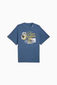 PRODUCT STORY Bring your A-game on and off the court with our basketball lifestyle pieces. Easy-to-wear essentials like hoodies, jerseys, tees, and sweatpants are given a fresh look with bold graphics and details inspired by our love for the game. Whether it's warm-ups, post-game, or everyday wear, these pieces are designed to make a statement. FEATURES & BENEFITS - Made with at least 20% recycled cotton. DETAILS - Style: 632878_01 - Color: Dark Indigo - Fit: Oversized - Main material: Single jersey - Neck: Ribbed crew neck - Short sleeves - Length: Regular - Rise: Medium MATERIAL INFORMATION - Shell: 100% cotton - Rib: 70% cotton, 30% polyester