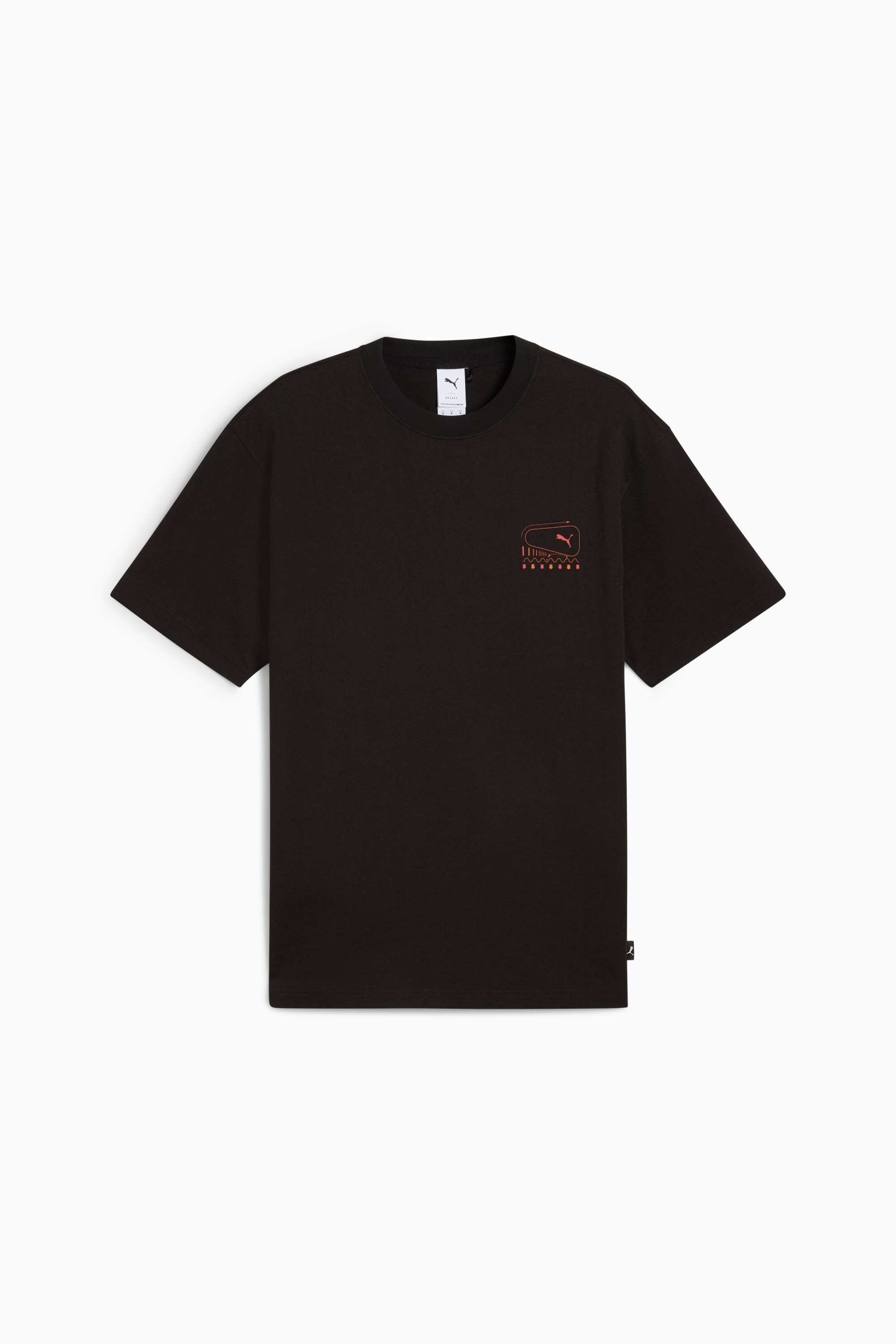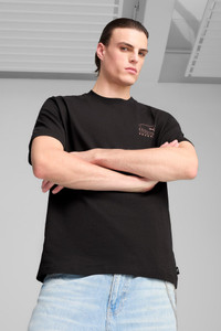 PRODUCT STORY Welcome to the House of Graphics. This collection transforms streetwear essentials like tees or hoodies with unique graphics inspired by sports. Part of the collection, this tee has a relaxed fit and a classic crew neck. FEATURES & BENEFITS - Made with at least 20% recycled cotton DETAILS - Style: 630248_01 - Color: PUMA Black - Relaxed fit - Jersey fabric, 230gsm - Regular length - Crew neck - Short sleeves - PUMA branding details MATERIAL INFORMATION - SHELL: 100% cotton - RIB: 70% cotton, 30% polyester