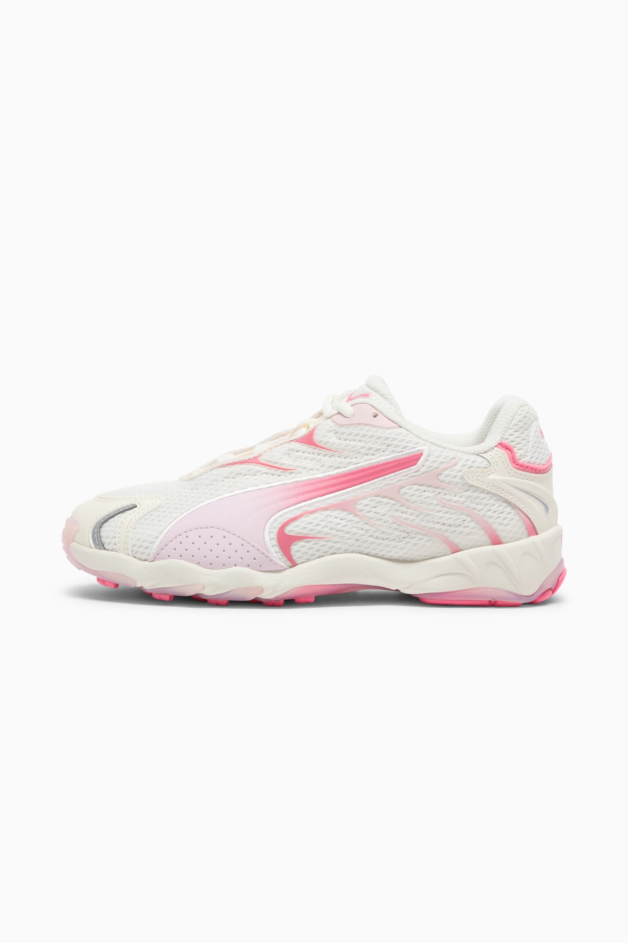 PRODUCT STORY The original Inhale was launched in 2000 as a running shoe with bold, exaggerated contours and a thick sole. Today this unmistakable silhouette makes its return for the streetwear world with its extreme curves and aggressive DNA still intact. This execution features a color gradient effect on the outsole and reflective details on the toe and heel. FEATURES & BENEFITS - CMEVA: PUMA's compression-moulded EVA material for lightweight performance DETAILS - Style: 403281_12 - Color: Warm White-Magic Rose - Regular width - Textile upper - Lace closures - Embroidered piping - PUMA branding details MATERIAL INFORMATION - Midsole: 100% Synthetic - Sockliner: 100% Textile - Outsole: 100% Rubber - Upper: 51% Textile, 49% Synthetic - Lining: 100% Textile