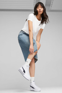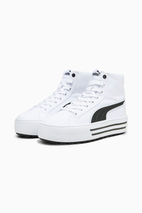 PRODUCT STORY Keep your style simple with the latest high-top version of our Kaia sneakers. They have a cushioned lining for all-day comfort and a small platform for extra elevation. The classic monochrome color scheme makes them a versatile addition to any wardrobe. FEATURES & BENEFITS - SOFTFOAM+: Step-in comfort sockliner designed to provide soft cushioning thanks to its extra thick heel - The upper of this shoe is made with at least 20% recycled materials as a step toward a better future DETAILS - Style: 392325_01 - Color: PUMA White-PUMA Black - Textile upper - Synthetic midsole - Rubber outsole - PUMA Formstrip on the lateral sides - PUMA Wordmark on the heel MATERIAL INFORMATION - Midsole: 100% Synthetic - Sockliner: 100% Textile - Outsole: 100% Rubber - Upper: 86.02% Textile, 13.98% Synthetic - Lining: 100% Textile