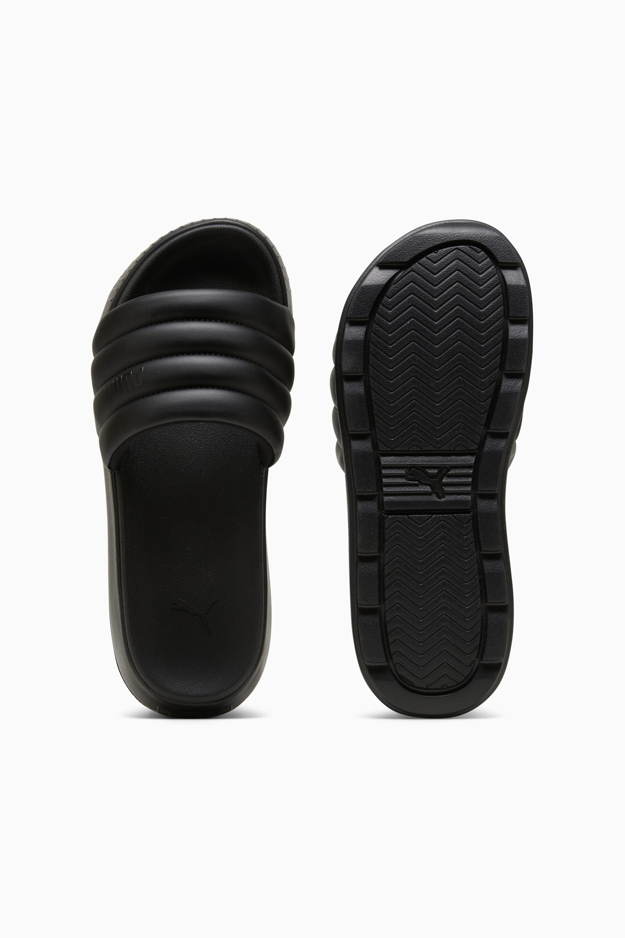 PRODUCT STORY Hit the beach in style with these recycled Karmen sandals. Their moulded footbed and IMEVA tooling let you power through the sand with ease. Slide into a classic sporty look and feel the breeze between your toes as you leave your mark along the shore. FEATURES & BENEFITS - The upper of the shoes is made with at least 20% recycled materials. DETAILS - Style: 395399_01 - Color: PUMA Black-PUMA Black - Synthetic leather upper provides durability and a stylish look - IMEVA Platform tooling provides support and stability - Moulded soft density footbed offers cushioning and comfort for all-day wear - Open toe - PUMA branding MATERIAL INFORMATION - Outsole: 100% Synthetic - Upper: 100% Synthetic - Lining: 100% Textile