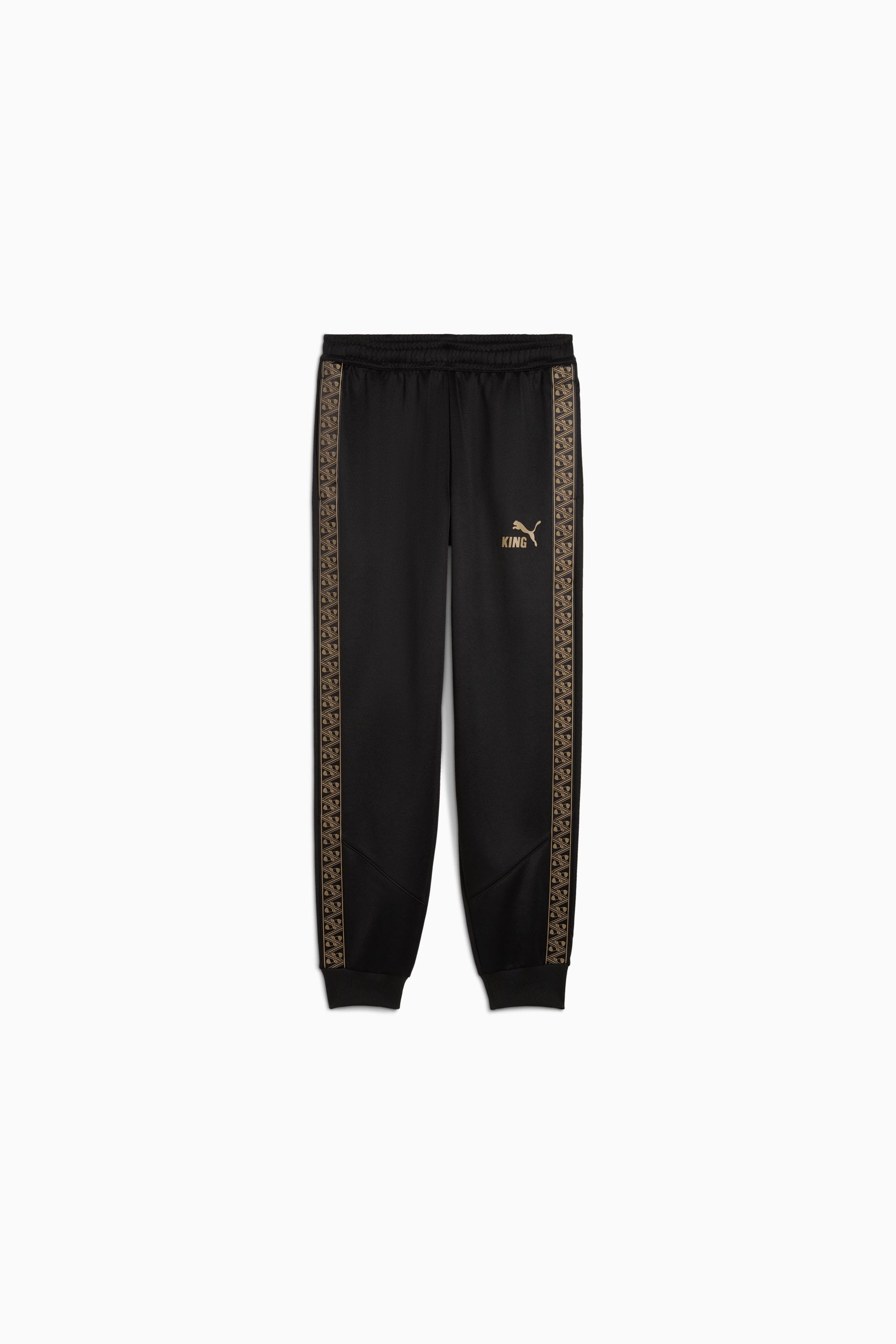 PRODUCT STORY Inspired by the legacy of greatness, this KING piece channels soccer heritage through elevated leisurewear. With archive-style details and a classic silhouette, it is made for those who lead with confidence—the true KINGs of the field and beyond. Endorsed by the elite, worn by legends in the making. FEATURES & BENEFITS - dryCELL: Performance technology designed to wick moisture from the body and keep you free of sweat during exercise - Made with at least 50% recycled materials. DETAILS - Style: 660291_01 - Color: PUMA Black-PUMA Gold - Fit: Regular - Main Material: Pique - Side pockets with zippers - Elasticated waistband with internal drawcords - Length: Regular - Rise: Medium - PUMA KING branding details MATERIAL INFORMATION - Trimming: 100% polyester - Shell: 63% polyester, 37% cotton - Pocket Bag: 100% polyester - Rib: 93% polyester, 7% elastane