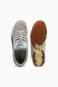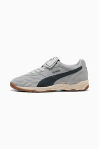 PRODUCT STORY We’re taking it back with our Soccer icon: The King Indoor. In the early ‘00s, this shoe represented youth style culture and today we’re bringing it back to inspire the next generation. This indoor Soccer shoe transcends sport and has become a style icon on and off the pitch. DETAILS - Style: 404280_01 - Color: Gray Echo-Alpine Snow - Fit: Regular - Toe: Rounded - Fastener: Laces - Lining: Textile - Heel Type: Flat - Midsole: EVA - Outsole: Rubber - Tongue cover MATERIAL INFORMATION - Midsole: 100% Synthetic - Sockliner: 100% Textile - Outsole: 100% Rubber - Upper: 100% Leather - cow - Lining: 100% Textile