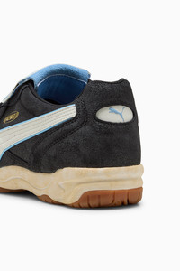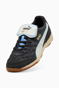 PRODUCT STORY We're bringing it back with our soccer icon: The King Indoor. In the early 2000s, this shoe represented youth style culture, and today we're bringing it back to inspire the next generation. This indoor soccer shoe goes beyond the sport and has become a style icon both on and off the field. DETAILS - Style: 403628_01 - Color: PUMA Black-Warm White - Fit: Regular - Toe: Rounded - Fastener: Laces - Lining: Textile - Heel type: Flat - Midsole: EVA - Outsole: Rubber - Detachable tongue cover