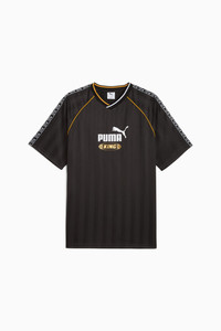 PRODUCT STORY We're bringing it back with a collection of apparel centered around a soccer icon: The King Indoor. In the early '00s, this shoe represented youth style culture, and now we're reintroducing it to inspire the next generation. This collection of archive-inspired pieces proudly features the KING logo front and center. FEATURES & BENEFITS - dryCELL: Performance technology designed to wick moisture from the body and keep you free of sweat during exercise - Made with at least 90% recycled materials. DETAILS - Style: 632563_01 - Color: PUMA Black - Fit: Relaxed - Main material: Pique - Short sleeves - Neck: V-Neck - Length: Regular - All-over print - Graphic tape on the sleeves MATERIAL INFORMATION - Shell: 100% polyester - Rib: 97% polyester, 3% elastane