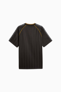 PRODUCT STORY We're bringing it back with a collection of apparel centered around a soccer icon: The King Indoor. In the early '00s, this shoe represented youth style culture, and now we're reintroducing it to inspire the next generation. This collection of archive-inspired pieces proudly features the KING logo front and center. FEATURES & BENEFITS - dryCELL: Performance technology designed to wick moisture from the body and keep you free of sweat during exercise - Made with at least 90% recycled materials. DETAILS - Style: 632563_01 - Color: PUMA Black - Fit: Relaxed - Main material: Pique - Short sleeves - Neck: V-Neck - Length: Regular - All-over print - Graphic tape on the sleeves MATERIAL INFORMATION - Shell: 100% polyester - Rib: 97% polyester, 3% elastane