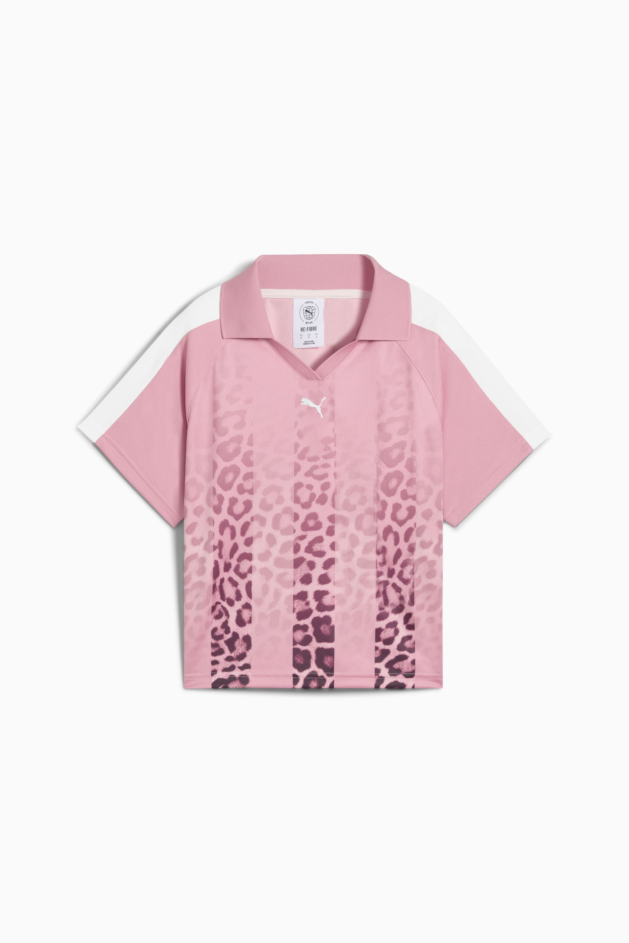 PRODUCT STORY Want to stand out while staying at the top of your game? Our sportstyle pieces perfectly blend the latest trends with sport-inspired design. Featuring bold graphics, comfortable fabrics, and athletic fits, these pieces keep up with your every move—from relaxed weekends to running errands. Functional, effortless, and unmistakably PUMA—your go-to choice for everyday style made easy. FEATURES & BENEFITS - As part of the RE:FIBRE program, this garment is made of at least 95% recycled material from textile waste and other used materials. DETAILS - Style: 633499_65 - Color: Poised Pink-AOP - Fit: Relaxed - Main material: Double face jacquard - Neck: Crew neck - Short sleeves - Length: Short MATERIAL INFORMATION - Inserts: 100% polyester - Shell: 100% polyester - Sleeve: 100% polyester - Rib: 97% polyester, 3% elastane