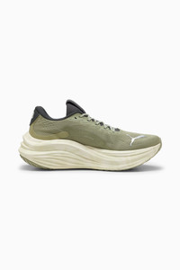 PRODUCT STORY Experience an exhilarating bounce like never before with the MagMax NITRO™. Boasting an impressive amount of our cutting-edge NITROFOAM™ technology, these shoes will effortlessly propel you from one mile to the next. Around the foot you’ll find a comfortable mesh, deluxe knitted tongue and cushioned heel. PUMAGRIP protects the precious NITROFOAM™ and provides top-notch traction helping to keep you steady on your feet. FEATURES & BENEFITS - NITROFOAM™: Advanced nitrogen-injected foam designed to provide superior responsiveness and cushioning in a lightweight package - PUMAGRIP: A durable rubber outsole that offers multi-surface traction - ENGINEERED MESH UPPER: Premium Mesh with engineered zones for enhanced breathability and stretch, reinforced with PWRTAPE for durability and lockdown - The upper of the shoes is made with at least 20% recycled materials. DETAILS - Style: 311922_01 - Color: Lux Army-Warm White-Dusky Gray - Regular fit - Rounded toe - Closure: Laces - Heel type: Flat - Heel-to-toe drop: 8mm - Stack height: 46mm/38mm - Pronation: Overpronation - Cushioning level: Max MATERIAL INFORMATION - Midsole: 100% Synthetic - Sockliner: 100% Textile - Outsole: 100% Rubber - Upper: 87% Textile, 13% Synthetic - Lining: 100% Textile