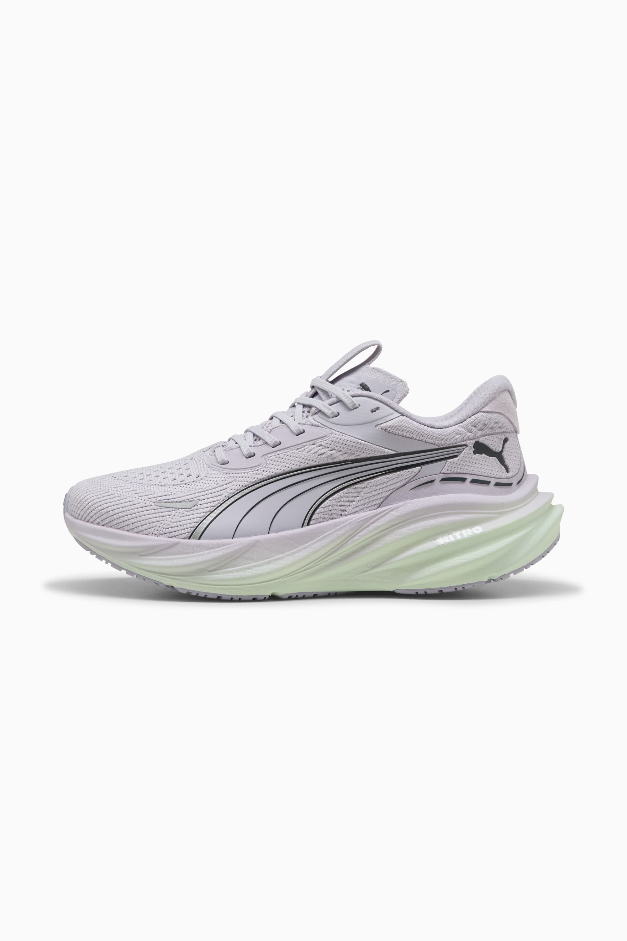 PRODUCT STORY Magnify 3 is built for supreme cushioning and all-day comfort. Designed for any run where softness and support matter most, it features a breathable engineered mesh upper and stacked NITROFOAM™ cushioning for a smooth, responsive ride. Whether you're going the distance or running purely for the joy of it, this shoe is made to enhance your comfort and keep you moving. FEATURES & BENEFITS - BREATHABILITY: Premium engineered knit material engineered for breathability and stretch, reinforced with PWRTAPE for durability and lockdown - NITROFOAM™: Innovative nitrogen-infused foam technology that uses premium raw materials to provide maximum energy return - PUMAGRIP: Outsole is made of durable rubber compound for multi-surface traction - The upper of the shoes is made with at least 30% recycled materials. DETAILS - Style: 311047_07 - Color: Lilac Crush-Sage Frost - Fit: Regular - Toe type: Rounded - Fastener: Laces - Heel type: Flat - Heel-to-toe drop: 10mm - Stack Height: 40mm / 30mm - Weight (UK4.5): 215g - Recommended for neutral pronators MATERIAL INFORMATION - Midsole: 100% Synthetic - Sockliner: 100% Textile - Outsole: 100% Rubber - Upper: 75% Textile, 22% Synthetic, 3% Leather - cow - Lining: 100% Textile