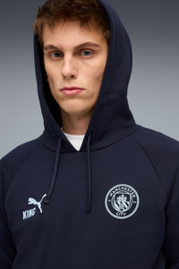 PRODUCT STORY Crafted for those who command the game, the KING collection blends heritage-inspired design with modern innovation. Featuring premium materials and high-quality materials, it delivers ultimate touch, control, and comfort. Worn by top football clubs, this collection embodies the legacy of KING, where tradition meets performance. FEATURES & BENEFITS - Made with at least 50% recycled materials. DETAILS - Style: 782698_06 - Color: Deep Navy-Team Light Blue - Fit: Regular - Main material: French Terry - Hooded - Long sleeves - Length: Regular - Club and PUMA branding details MATERIAL INFORMATION - Trimming: 100% polyester - Shell: 68% cotton, 32% polyester - Rib: 97% cotton, 3% elastane