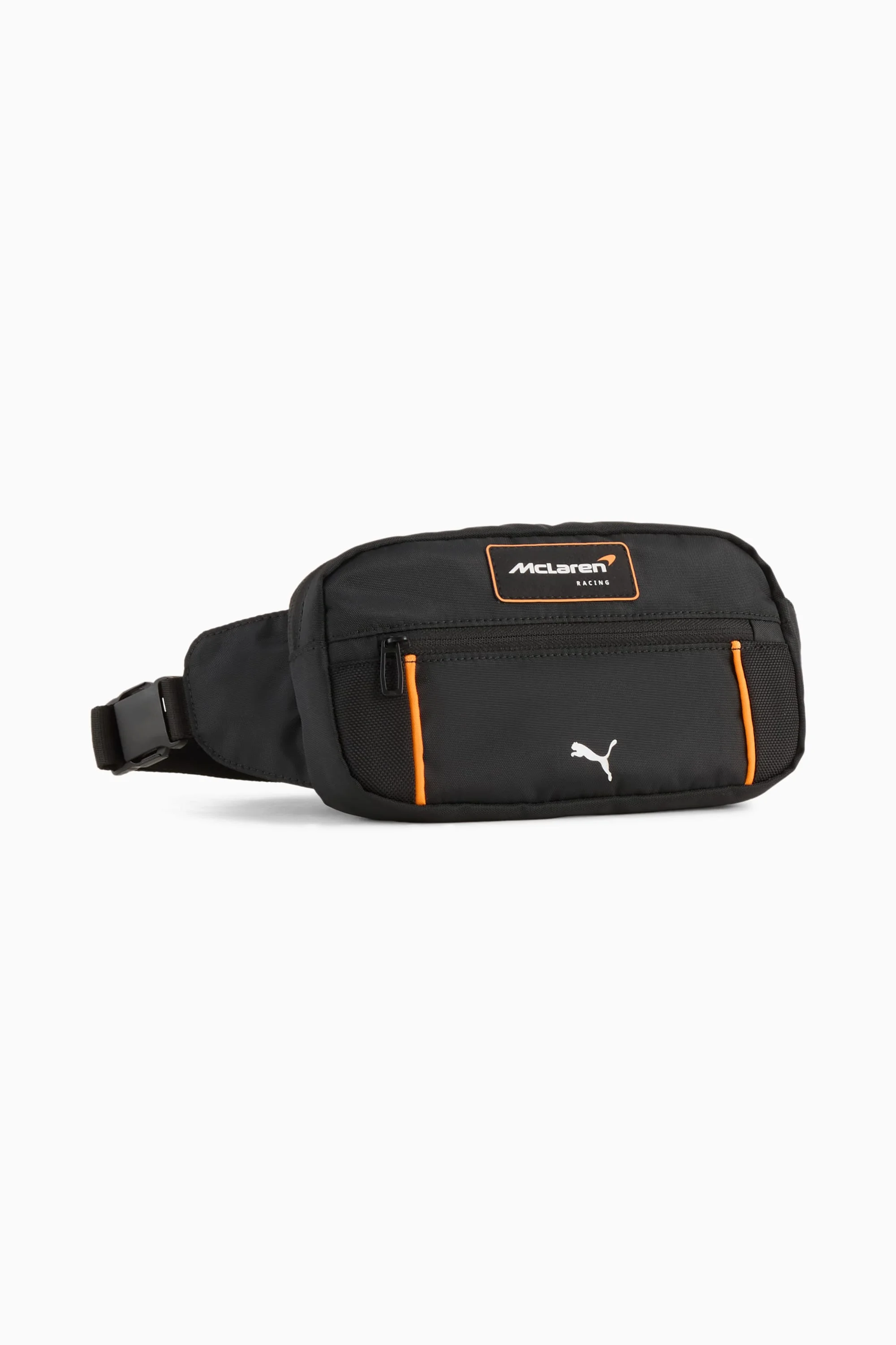PRODUCT STORY Feel the pulse of race day with this McLaren Racing Waist Bag. Sleek design, breathable panels, and piping details keep your look sharp. The adjustable strap means comfort. With a McLaren Racing badge front and centre, you're always ready to move – trackside or city streets. FEATURES & BENEFITS - Made with at least 50% recycled materials. DETAILS - Style: 092872_01 - Color: PUMA Black - Zipped main compartment - Two-way zip opening - Adjustable strap with buckle closure - Volume: 1L - Dimensions: H11.5cm x W25cm x D4cm - McLaren Racing badge - PUMA branding details MATERIAL INFORMATION - Lining: 100% POLYESTER WITH PU COATING - Shell: 100% POLYESTER WITH PU COATING - Mesh: 100% polyester