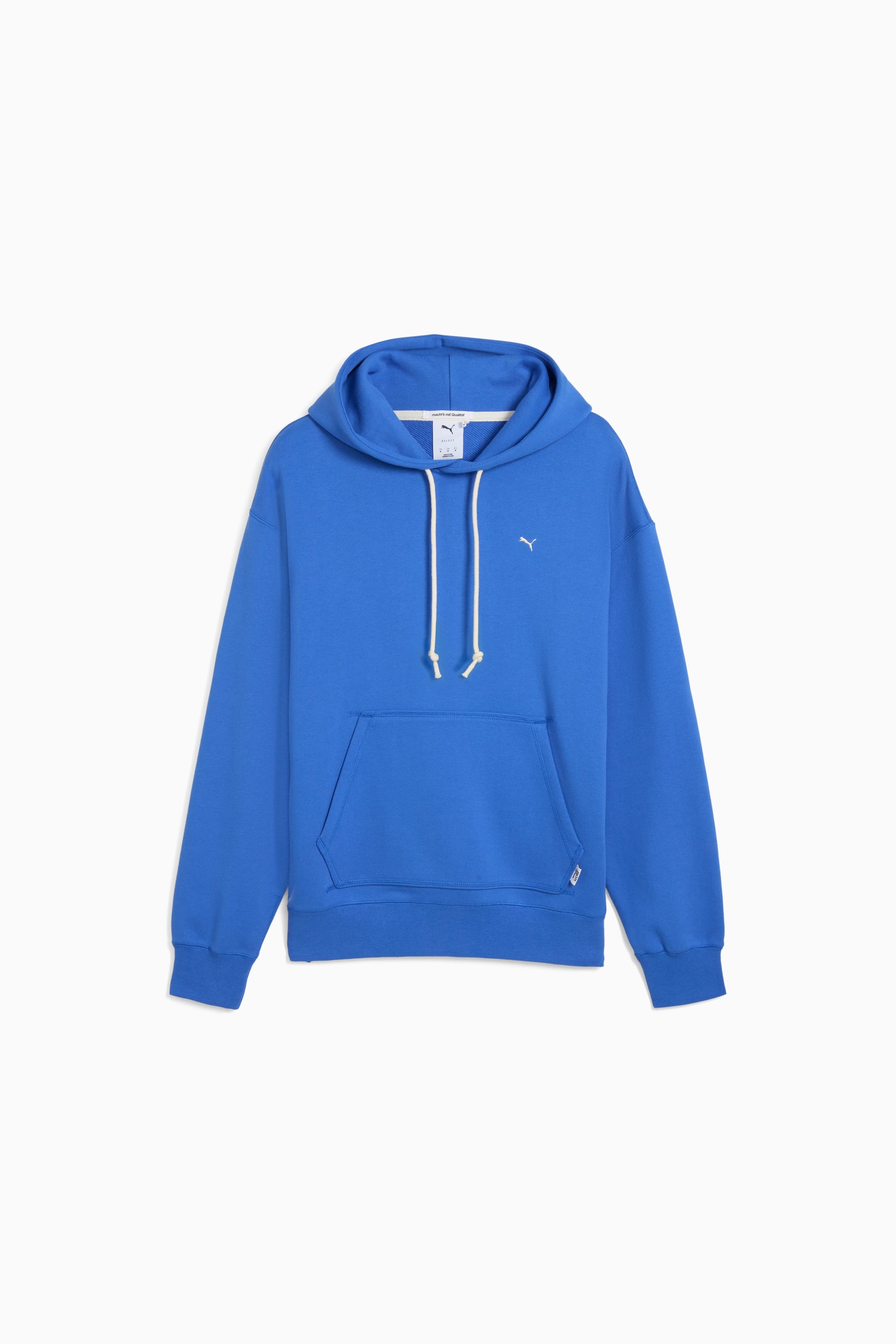 PRODUCT STORY MMQ = "Macht's mit Qualitat." Translated from German, it means "Made with Quality" and represents the best of PUMA's designs and materials. This season, MMQ is back with a new collection of timeless essentials designed for city living. Featuring everything from tees to hoodies to jackets, these pieces are functional, durable, and versatile. FEATURES & BENEFITS - Made with at least 20% recycled cotton. DETAILS - Style: 632299_13 - Color: Mountain Blue - Fit: Relaxed - Main material: 450gsm French Terry - Hood with drawcords for an adjustable fit - Long sleeves - Elastic cuffs and hem - Length: Regular - Pockets: Kangaroo Pocket MATERIAL INFORMATION - Shell: 100% cotton - Rib: 97% cotton, 3% elastane