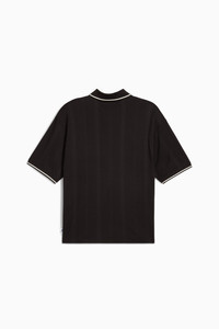 PRODUCT STORY Experience the essence of our "Macht's mit Qualitat" collection in this minimalistic polo. Standing for "Made with Quality", it features a sleek three-button placket, rib collar, and sophisticated PUMA Cat logo embroidery. Designed for those who appreciate contemporary silhouettes and refined details. FEATURES & BENEFITS - Made with at least 20% recycled cotton DETAILS - Style: 629349_01 - Color: PUMA Black - Relaxed fit - Interlock fabricc - Regular length - Collar - Button placket - Short sleeves - PUMA branding details MATERIAL INFORMATION - Shell: 60% cotton, 40% Modal - Rib: 96% cotton, 4% elastane
