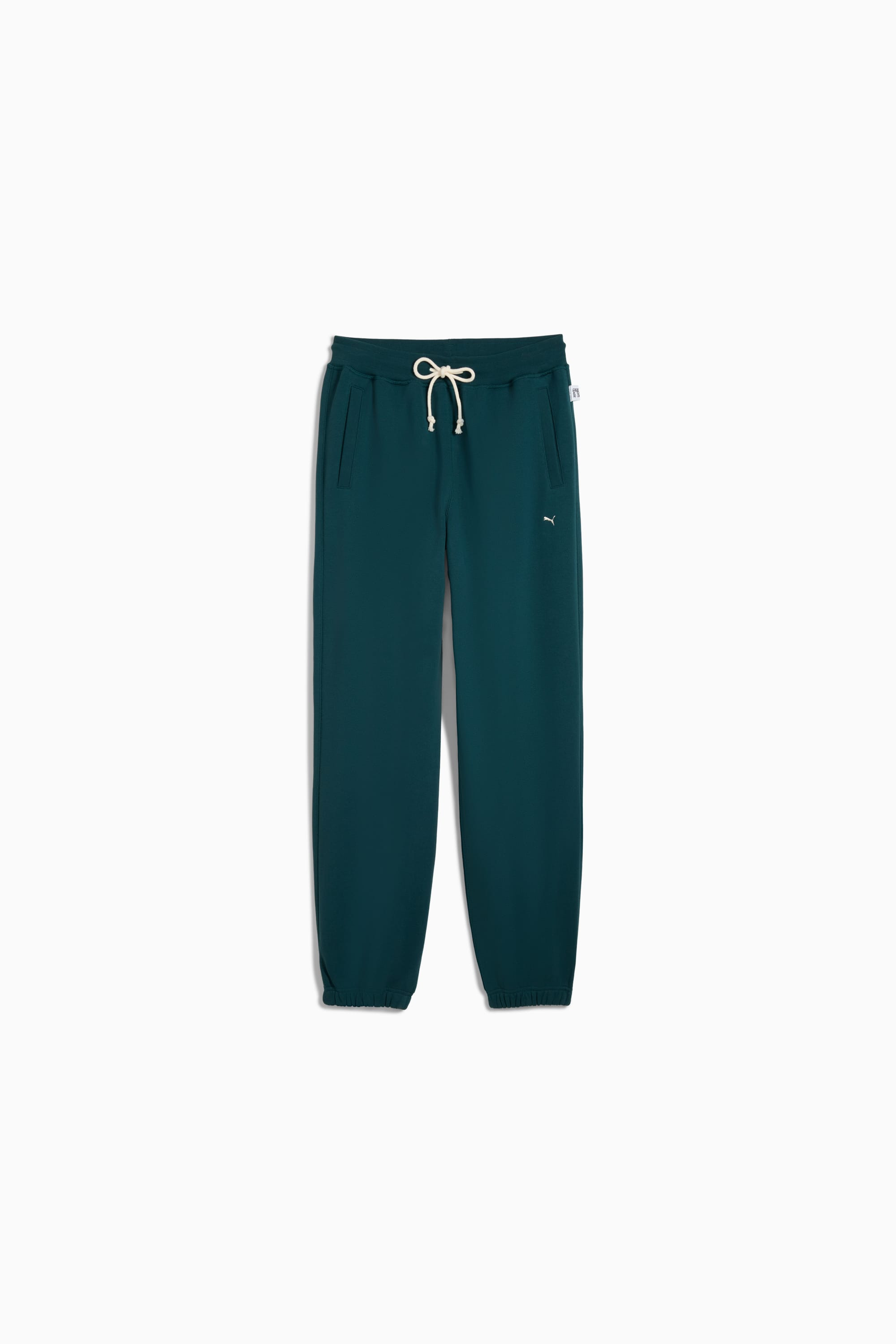 PRODUCT STORY MMQ = "Macht's mit Qualitat." Translated from German, it means "Made with Quality" and represents the best of PUMA's designs and materials. This season, MMQ is back with a new collection of timeless essentials made for city living. Featuring everything from tees to hoodies to jackets, these pieces are functional, durable, and versatile. FEATURES & BENEFITS - Made with at least 20% recycled cotton. DETAILS - Style: 632296_75 - Color: Green Terrain - Fit: Relaxed - Main material: 450 gsm French Terry - Length: Regular - Elastic cuffs - Rise: Medium - Elasticated ribbed waistband with internal drawcords - Pockets: Side pockets, Back zip pocket MATERIAL INFORMATION - Shell: 100% cotton - Pocket Bag: 100% cotton - Rib: 97% cotton, 3% elastane