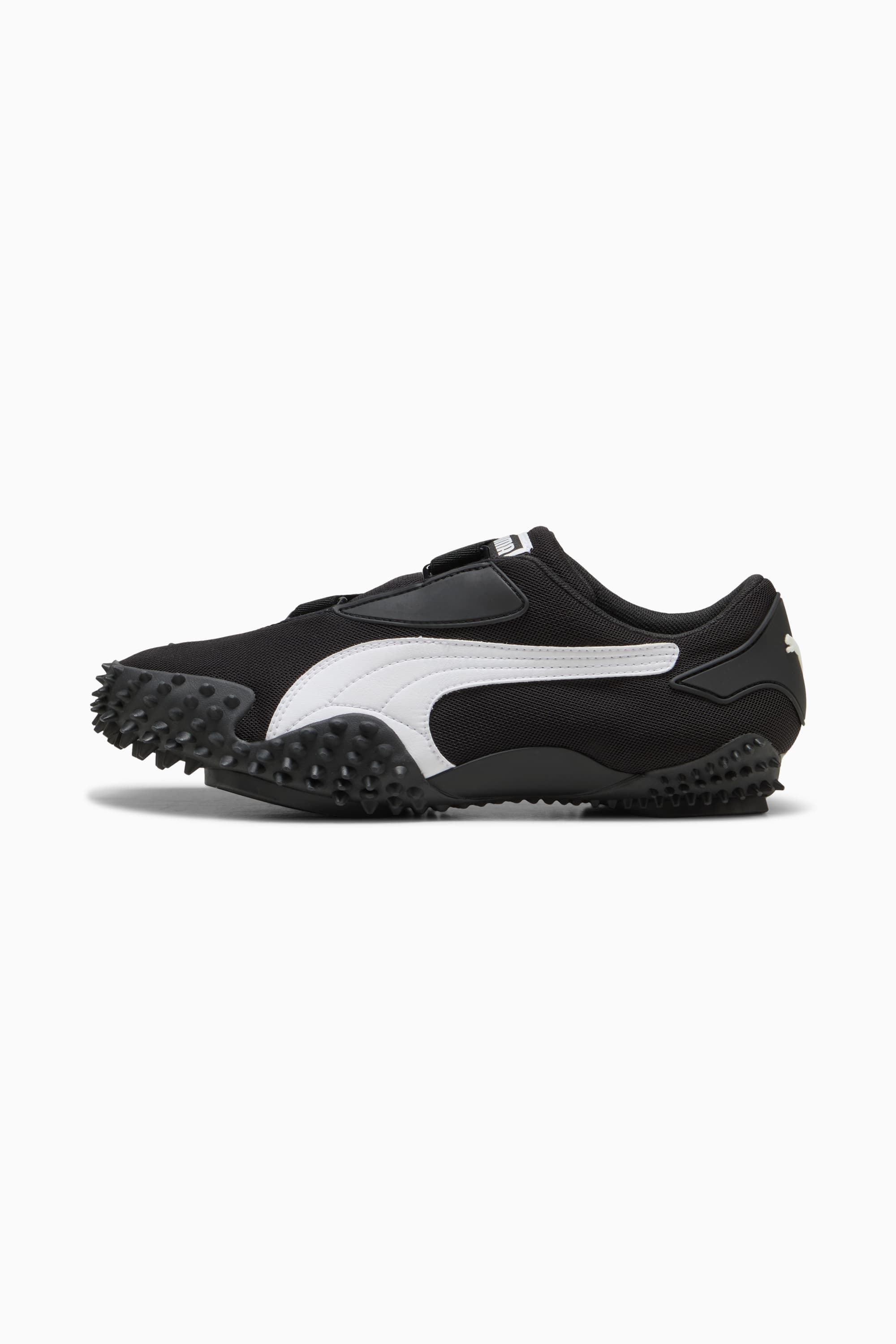 PRODUCT STORY Mostro isn’t a shoe for just anyone. For over two decades it’s been worn by those who defy conventions and eschew the norm. Taking its name from the Italian word for monster, Mostro is a hybrid creation that draws from two diverse realms: the sleek sprinting spikes of the ‘60s and the surfing shoes of the ‘80s. To this day it continues to captivate with its distinctive, sculptural design, low-profile shape, and avant-garde, spiked sole. FEATURES & BENEFITS - The upper of the shoes is made with at least 20% recycled materials. - Vegan certified product. DETAILS - Style: 405194_09 - Color: PUMA Black-PUMA White - Fit: Regular - Toe Type: Rounded - Fastener: Elasticated hook-and-loop closure system - Lining: Textile - Heel Type: Flat - Rubber spikes on the sole as design detail MATERIAL INFORMATION - Sockliner: 100% Textile - Outsole: 83.70% Rubber, 16.30% Synthetic - Upper: 73.08% Textile, 26.92% Synthetic - Lining: 100% Textile