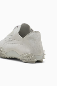 PRODUCT STORY Mostro isn't a shoe for just anyone. For over two decades, it's been worn by those who defy conventions and reject the norm. Taking its name from the Italian word for monster, Mostro is a hybrid creation that draws inspiration from two diverse realms: the sleek sprinting spikes of the '60s and the surfing shoes of the '80s. To this day, it continues to captivate with its distinctive, sculptural design, low-profile shape, and avant-garde, spiked sole. This version is crafted in suede with no lining, offering extra lightness and flexibility. DETAILS - Style: 403174_02 - Color: Glacial Gray-Feather Gray - Fit: Regular - Toe Type: Rounded - Fastener: Elasticated hook-and-loop closure system - Lining: Unlined - OrthoLite® sockliner - Outsole: Rubber - Rubber spikes on the sole as design detail
