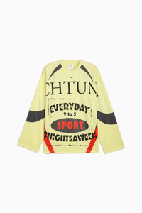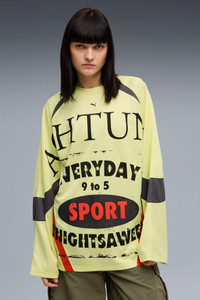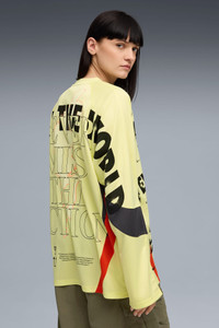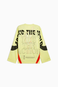 PRODUCT STORY This isn't your parents' nine-to-five. The Nine to Five collection is all about sundown to sunup, inspired by the golden age of techno in the '90s, where experimental music met even more experimental fashion. Today, we honor those all-night trendsetters with this collection of baggy pants, fitted tops, and bold graphics. FEATURES & BENEFITS - dryCELL: Performance technology designed to wick moisture from the body and keep you free of sweat during exercise - Made with 100% recycled material excluding trims & decorations. DETAILS - Style: 632504_35 - Color: Gold Moon - Fit: Relaxed - Main material: Pique - Neck: V-Neck - Long sleeves - Length: Regular MATERIAL INFORMATION - Inserts: 100% polyester - Shell: 100% polyester - Collar: 100% polyester