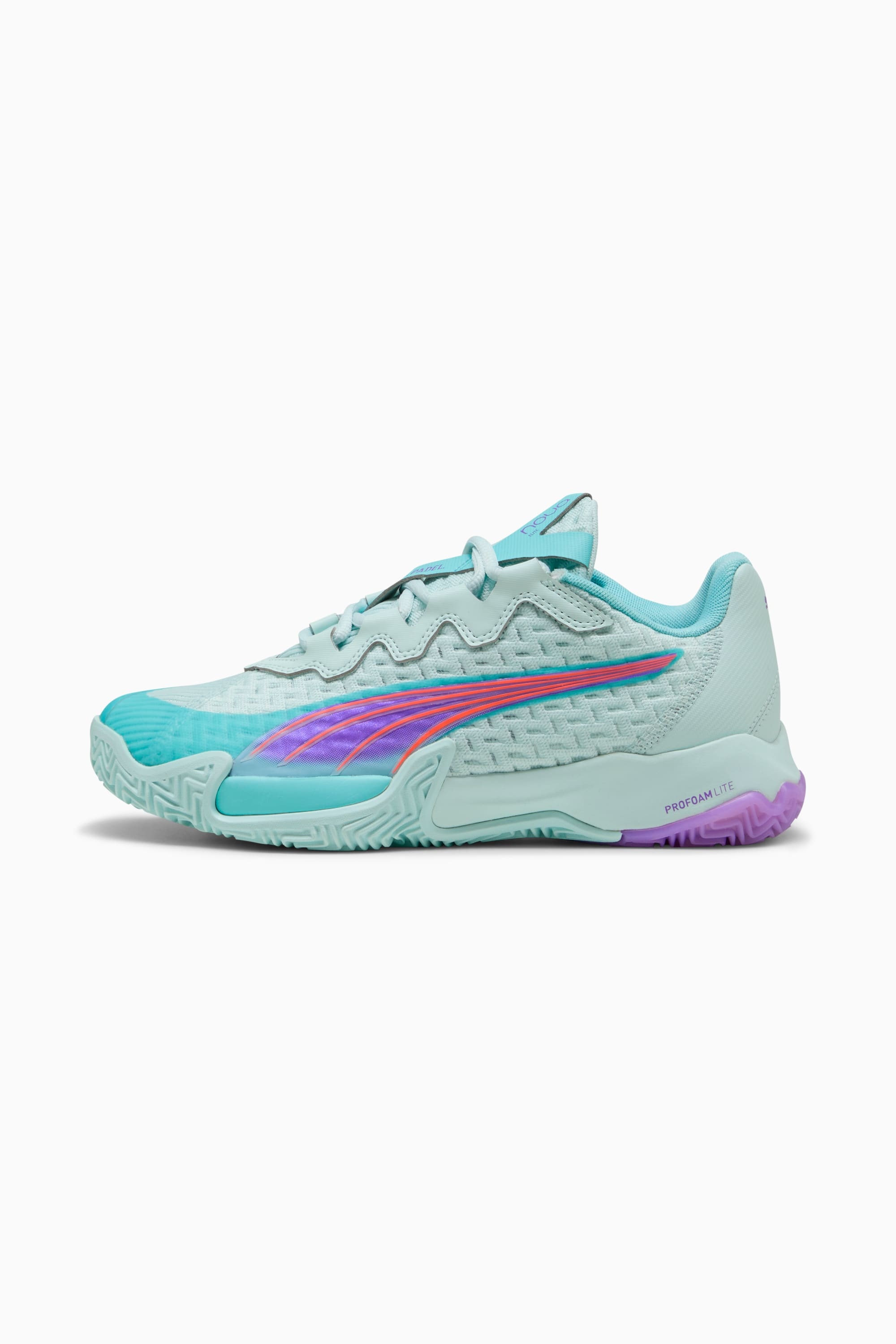 PRODUCT STORY Unlock explosive speed and dominate the game with PUMA. Engineered for women, these kicks feature a WEBCAGE+ lacing system, PROFOAMLITE midsole, and a herringbone outsole for superior grip. Lightweight, flexible, and ready to elevate your every move. Built to be fast and built to last. FEATURES & BENEFITS - Upper made with at least 30% recycled materials DETAILS - Style: 108289_01 - Color: Peaceful Blue-Purple Glimmer-Safe Lake - WEBCAGE+ lacing system and PWRPRINT offer durability and freedom of movement - PROFOAMLITE midsole provides lightweight, superior cushioning for enhanced performance - Engineered specifically for women's feet, ensuring a comfortable and secure fit - New engineered rubber tread pattern provides superior grip and traction for quick changes of direction - Rubber outsole - Fastener: laces MATERIAL INFORMATION - Midsole: 100% Synthetic - Sockliner: 100% Textile - Outsole: 94.50% Rubber, 5.50% Synthetic - Upper: 67.37% Synthetic, 32.63% Textile - Lining: 100% Textile
