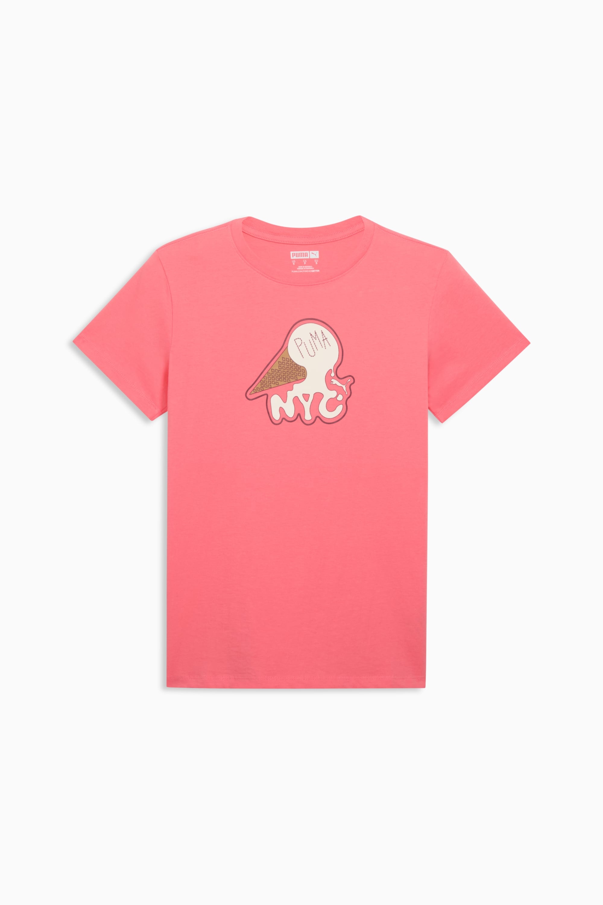 PRODUCT STORY Rep the Five Boroughs in PUMA style with this eye-catching tee, boasting a fun ice cream graphic. Made from 100% cotton, this comfort-fit tee is sure to be your next cozy fave. DETAILS - Style: 633243_24 - Color: Peach Frost - Short sleeves - Crew neck - Regular length - Comfort fit - PUMA branding details