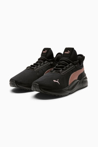PRODUCT STORY A street-running silhouette redesigned for everyday athleisure, the Pacer Future Sneakers feature sleek lines, all-day comfort and undeniable urban influence. With a SoftFoam+ sockliner for superior cushioning and lace-through midfoot caging for medial and lateral support, these boldly branded kicks simply pop off the pavement. FEATURES & BENEFITS - SoftFoam+ sockliner provides superior cushioning and optimal comfort for every step of your day. DETAILS - Style: 401066_25 - Color: PUMA Black-Rose Gold - Two-tone knit mesh upper - Synthetic leather eyestay - Low boot - Lace closure - Wide fit - EVA midsole - Rubber outsole - PUMA branding details