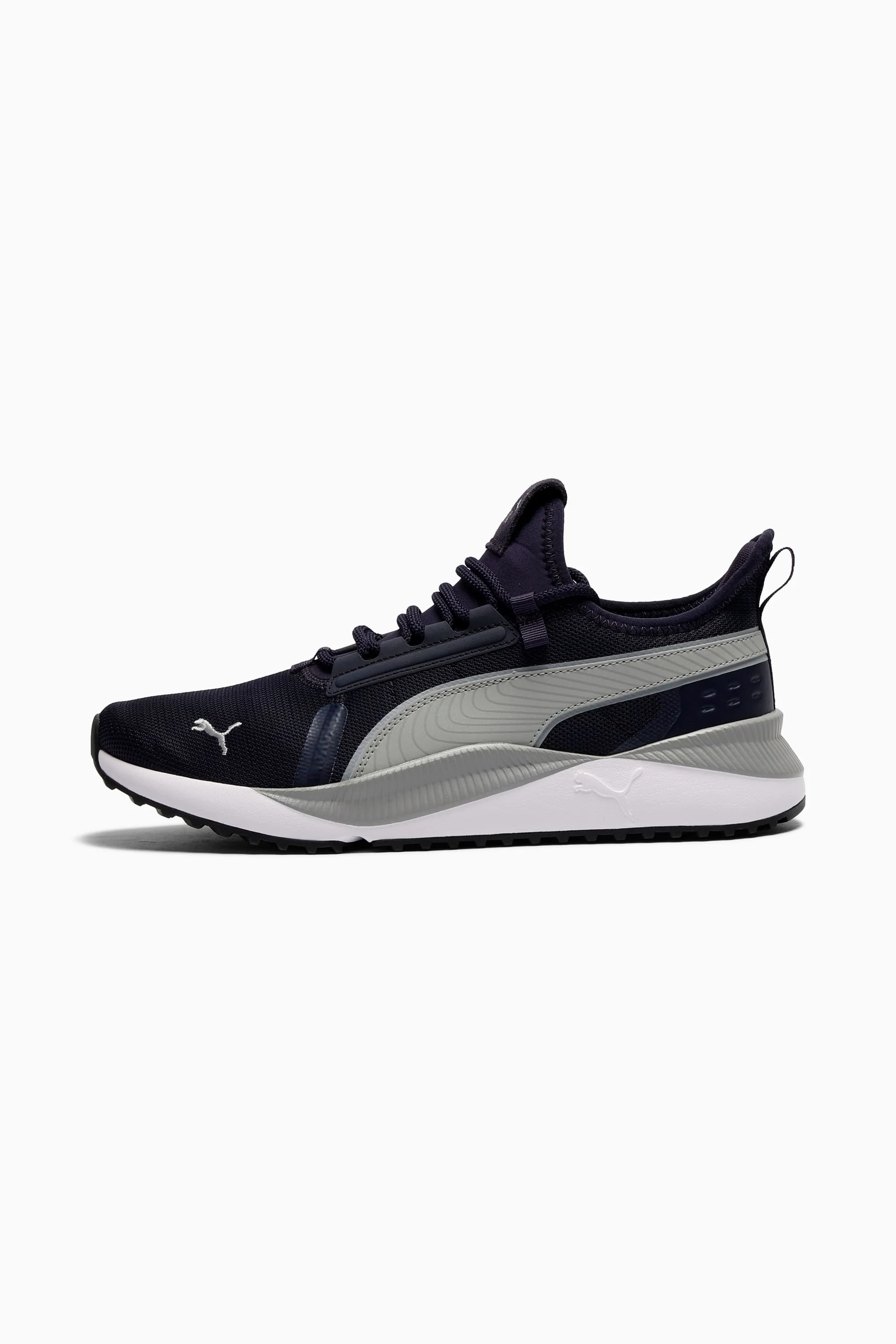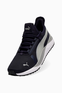 A street-running silhouette redesigned for everyday athleisure, the Pacer Future Sneakers feature sleek lines, all-day comfort and undeniable urban influence. With a convenient slip-on entry, a SoftFoam+ sockliner for superior cushioning and lace-through midfoot caging for medial and lateral support, these boldly branded kicks simply pop off the pavement. FEATURES & BENEFITS - CMEVA: PUMA's compression-moulded EVA material for lightweight performance - SoftFoam+: PUMA's comfort sockliner for instant step-in and long-lasting comfort that provides soft cushioning every step of your day DETAILS - Style: 384634_38 - Color: New Navy-Gray Echo-PUMA Black - Mesh upper with synthetic leather eyestay and casual trims - EVA midsole and rubber outsole - Lace closure for a snug fit - PUMA No. 1 Logo at tongue - PUMA Cat Logo at lateral toe - PUMA Formstrip at medial and lateral sides MATERIAL INFORMATION - Midsole: 100% Synthetic - Sockliner: 100% Synthetic - Outsole: 100% Rubber - Upper: 57.90% Textile, 42.10% Synthetic - Lining: 100% Textile