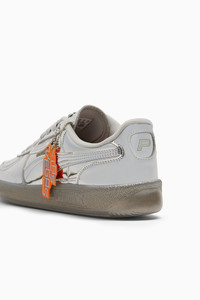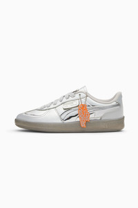 PRODUCT STORY Bold color-blocking meets terrace heritage in this standout design. Crafted with metallic leather for a premium feel, it's perfect for game-day vibes or nights out. Classic T-toe construction channels PUMA's soccer roots while keeping it fresh for today's trendsetters. Make moves with PUMA energy, wherever the game takes you. DETAILS - Style: 404669_01 - Color: Puma Silver-Glacial Gray-Orange Glo - Width: Regular - Toe Type: Rounded - Fastener: Laces - Heel type: Flat MATERIAL INFORMATION - Sockliner: 100% Textile - Outsole: 100% Rubber - Upper: 100% Leather - cow - Lining: 100% Textile