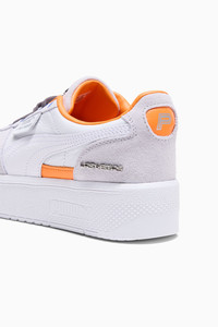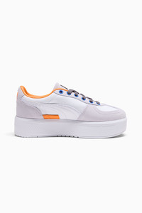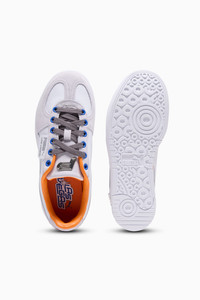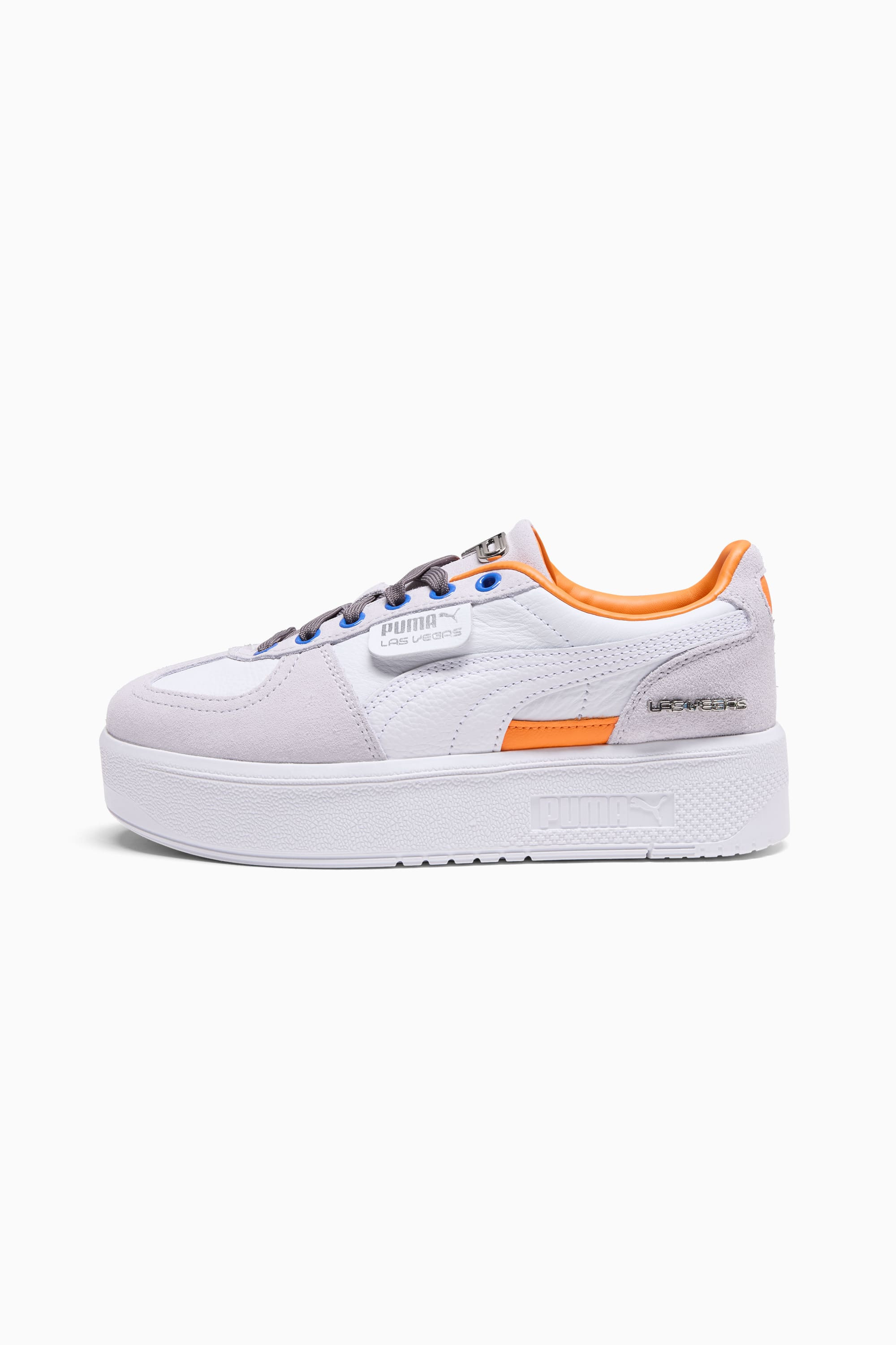 PRODUCT STORY Back in the '80s, the Palermo was a fan favorite in British soccer stadiums, instantly recognizable for its pops of color and classic gum sole. Today, the Palermo has evolved from an icon of soccer culture to a nostalgic streetwear staple, ready for game day and every day. This version takes the Palermo to new heights with an elevated platform sole. DETAILS - Style: 404553_01 - Color: PUMA White-Silver Mist-Orange Glo - Width: Regular - Toe Type: Rounded - Fastener: Laces - Platform sole - Lining: Textile MATERIAL INFORMATION - Midsole: 100% Synthetic - Sockliner: 100% Textile - Outsole: 100% TR (Thermoplastic Rubber) - Upper: 100% Leather - cow - Lining: 100% Textile
