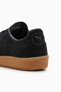 PRODUCT STORY Back in the '80s, the Palermo was a fan favorite in British soccer stadiums, instantly recognizable for its pops of color and classic gum sole. Today, the Palermo has evolved from an icon of soccer culture to a nostalgic streetwear staple, ready for game day and every day. DETAILS - Style: 403262_01 - Color: PUMA Black-Gum - Width: Regular - Toe Type: Rounded - Fastener: Hidden Laces - Heel type: Flat - PUMA Formstrip on the side with heavy stitching detail MATERIAL INFORMATION - Sockliner: 100% Synthetic - Outsole: 100% Rubber - Upper: 100% Leather - cow - Lining: 60% Textile, 40% Synthetic