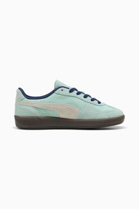 PRODUCT STORY Straight from our archives, it's the PUMA Palermo. This classic terrace shoe debuted in the 80's and now, we've brought it back for the fans. With its signature T-toe construction and classic gum sole, this version features a textile upper and suede overlays. DETAILS - Style: 400783_16 - Color: Mint Melt-Warm White - Textile base - Suede leather Formstrip - Suede leather toe and heel overlays - PUMA branding details - Mesh lining - Lace closure MATERIAL INFORMATION - Sockliner: 100% Textile - Outsole: 100% Rubber - Upper: 73.04% Leather - cow, 26.96% Textile - Lining: 100% Textile