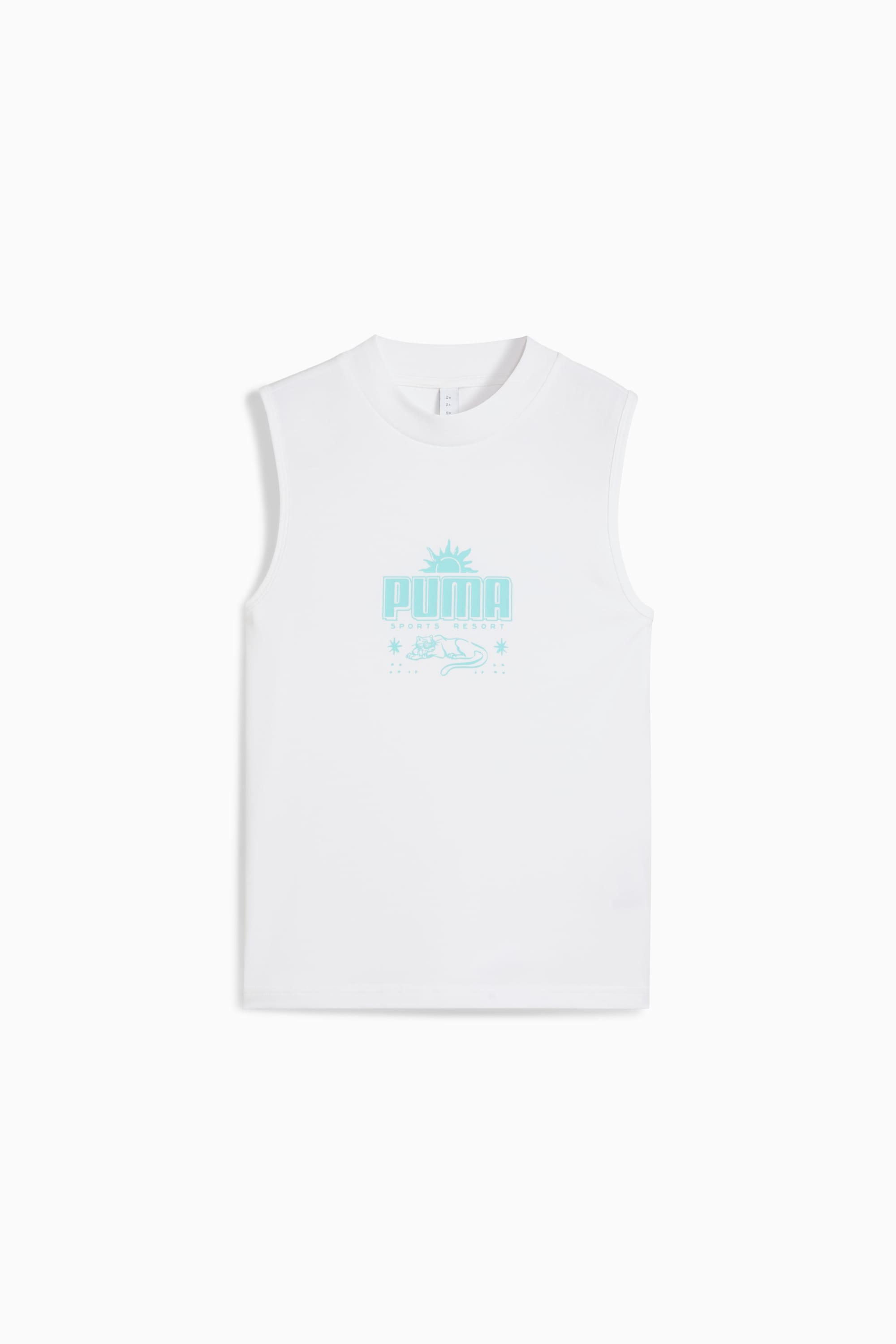 PRODUCT STORY Complete your everyday look with this slim-fit tank, featuring a graphic rubber print that brings a touch of sporty vibes to your look. Perfect for those who love to be comfortable yet sylish. DETAILS - Style: 688543_02 - Color: PUMA White - Slim fit - Main material: Single jersey - Short length - Crew neck - Sleeveless - PUMA branding details MATERIAL INFORMATION - SHELL: 95% cotton, 5% elastane - RIB: 80% cotton, 20% polyester