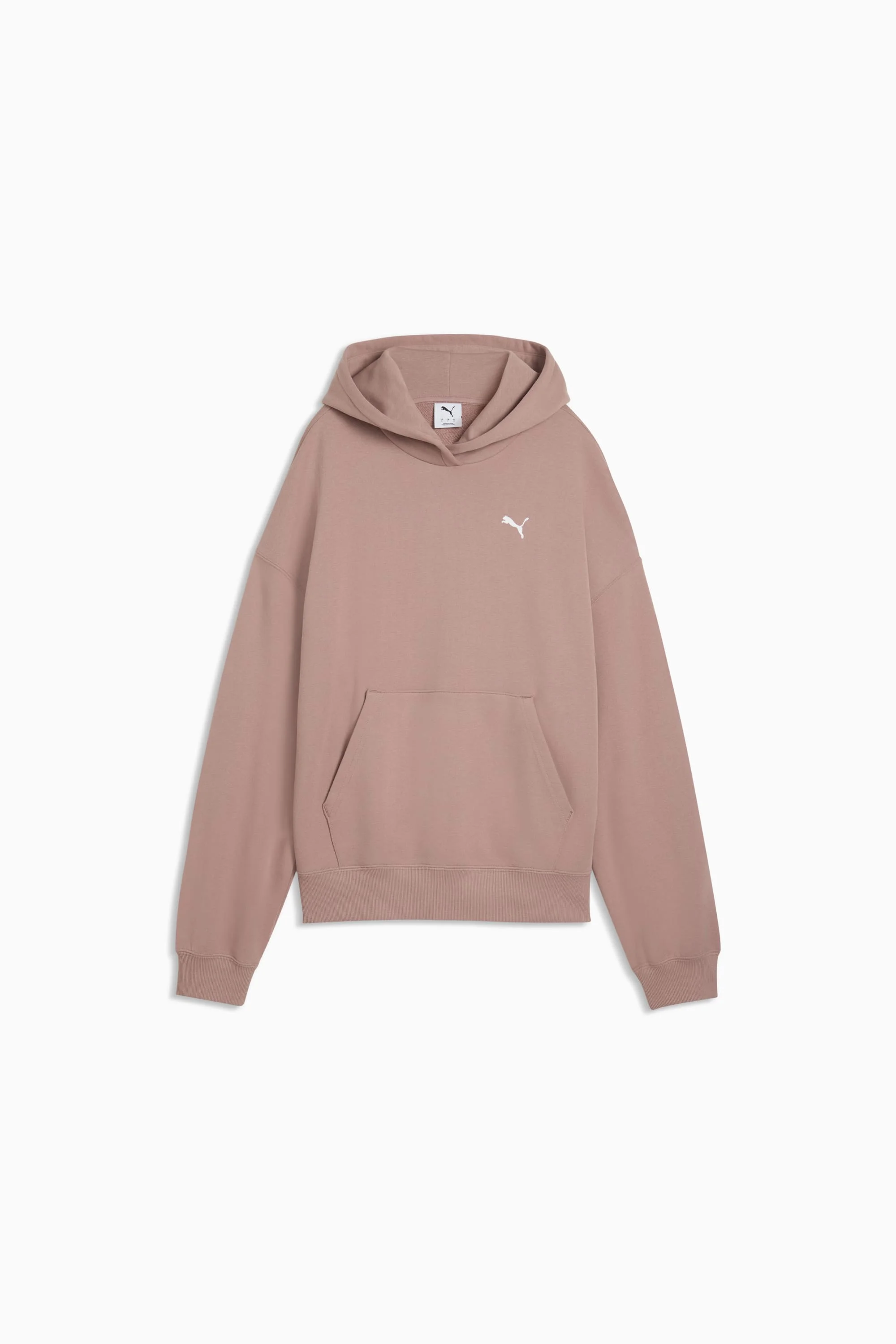 PRODUCT STORY A hoodie you can wear on repeat. This oversized sweatshirt has a simple design that makes it easy to mix and match. The peach touch fabric is extra soft, so you feel cosy from weekend errands to lunch with friends. FEATURES & BENEFITS - Made with at least 20% recycled cotton. DETAILS - Style: 634582_88 - Color: Sandstone - Fit: Oversized - Main material type: French Terry - Hooded - Long sleeves - Length: Short - Embroidered PUMA Cat logo MATERIAL INFORMATION - Hood Lining: 68% cotton, 32% polyester - Shell: 100% cotton - Rib: 96% cotton, 4% elastane