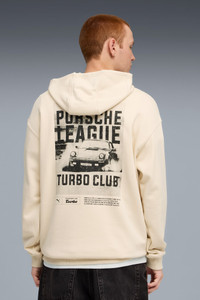 PRODUCT STORY These new Porsche Legacy pieces honor the brand's iconic motorsport heritage, combining high-quality materials with timeless design. Inspired by the spirit of high performance, each piece blends classic style with modern comfort. Whether you're on the track or the streets, embrace the legacy of Porsche with style. FEATURES & BENEFITS - Made with at least 30% recycled materials. DETAILS - Style: 632688_09 - Color: Alpine Snow - Fit: Relaxed - Main material: French Terry - Neck: Crew neck - Long sleeves - Length: Regular - Porsche Turbo poster inspired graphic on the back - Part of the Porsche League by Turbo Club community focused collection MATERIAL INFORMATION - Shell: 67% cotton, 33% polyester - Rib: 97% cotton, 3% elastane