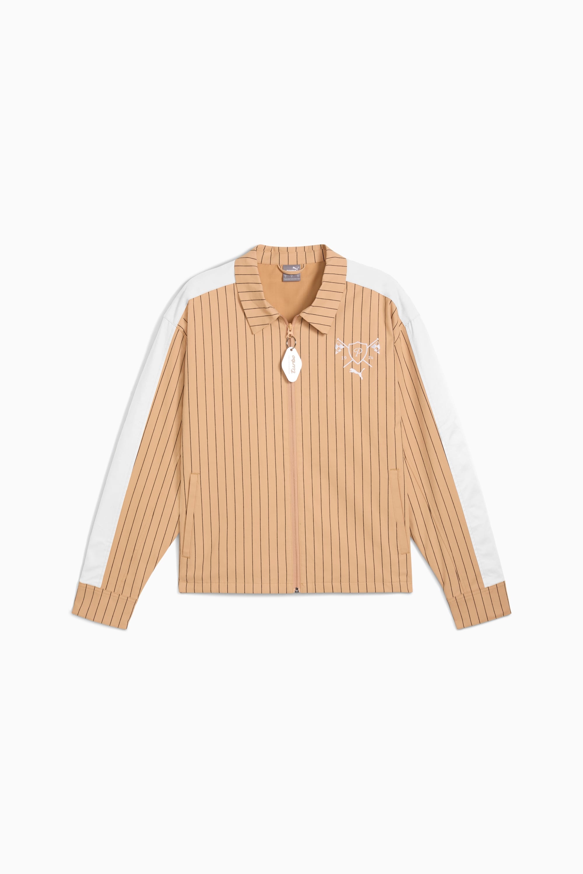 PRODUCT STORY Porsche Legacy presents Turbo Club, one of the most prestigious clubs in the world. It's country club inspired, with a special focus on the Porsche 911 Turbo to bring to life an iconic lifestyle collection. Embrace the legacy with this relaxed-fit jacket, featuring the iconic 911 Turbo pinstripe pattern, T7 sleeve stripes, and a seasonal graphic embroidery on the back. FEATURES & BENEFITS - Made with at least 20% recycled cotton. DETAILS - Style: 630266_10 - Color: Warm Beige - Relaxed fit - Main material: Twill weave - Regular length - Roll neck - Full zip - Long sleeves - Hand pockets - Iconic pinstripe pattern from the 911 Turbo seat - T7 stripe on the sleeves - Key chain attachement detail MATERIAL INFORMATION - Upper Pocket Bag: 80% polyester, 20% cotton - LINING: 80% polyester, 20% cotton - Shell: 98% cotton, 2% elastane - Sidepanel: 98% cotton, 2% elastane - Lower Pocket Bag: 98% cotton, 2% elastane