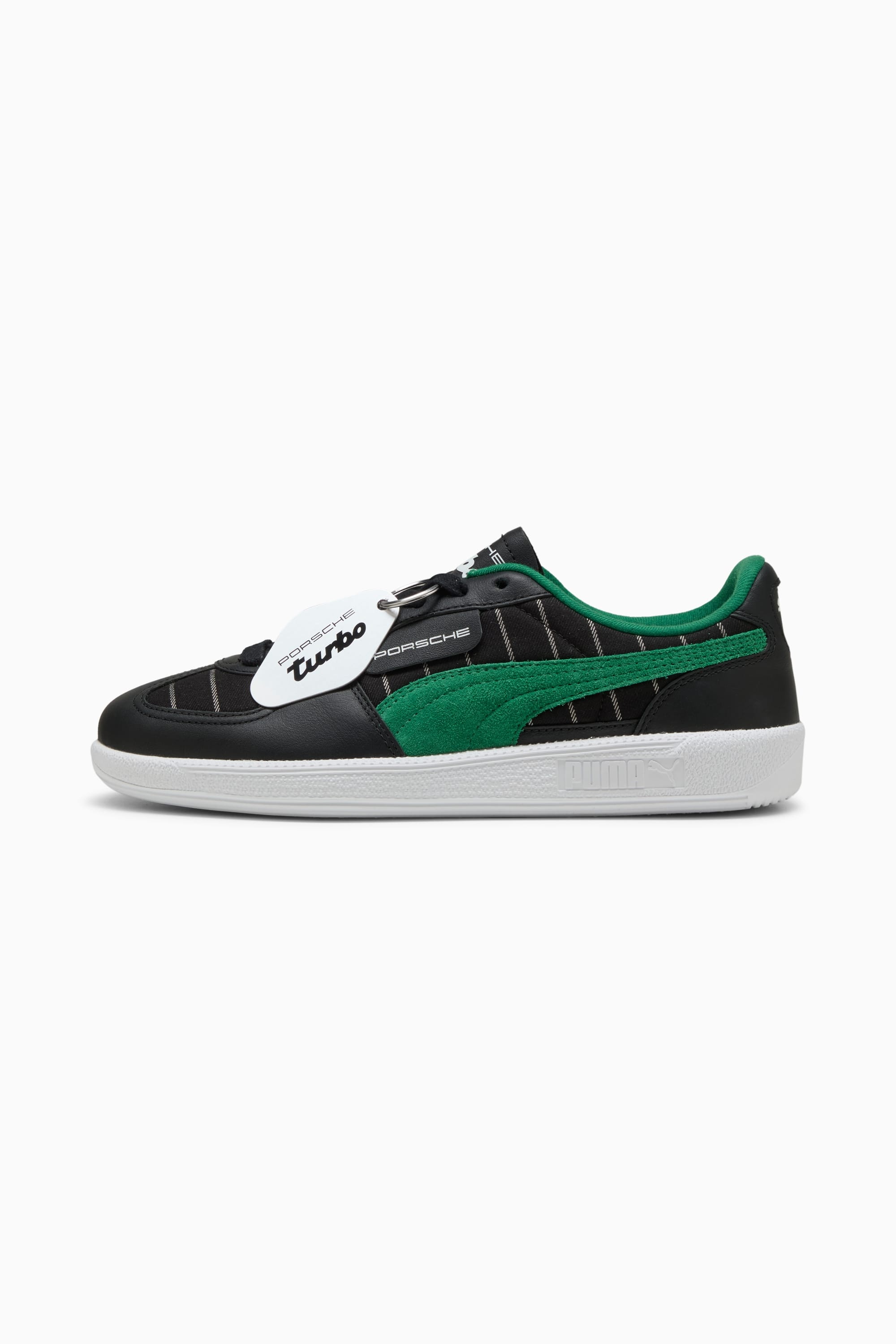 PRODUCT STORY Step into the past with a modern twist. Featuring a nylon base, premium suede overlays, and a leather Formstrip, these PUMA kicks bring heritage vibes to today's sneaker scene. Perfect for making a statement wherever you go. DETAILS - Style: 308647_01 - Color: PUMA Black-Archive Green - Regular width - Textile upper - Lace closure - Nylon base - Premium suede - Leather Formstrip - PUMA and Porsche Legacy branding MATERIAL INFORMATION - Sockliner: 100% Textile - Outsole: 100% Rubber - Upper: 72.15% Leather - cow, 26.02% Textile, 1.83% Synthetic - Lining: 100% Textile