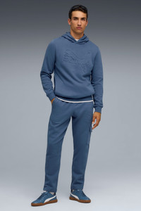 PRODUCT STORY Stylish, comfortable, and always on point — PUMA Essentials are designed for relaxed days. Whether you're lounging, grabbing a coffee, or staying on the go, these pieces deliver the perfect mix of comfort and style. Simple, versatile, and made to keep you feeling great all day long. FEATURES & BENEFITS - Made with at least 50% recycled materials DETAILS - Style: 690423_80 - Color: Dark Indigo - Fit: Regular - Main Material: Fleece - Neck: Crew neck - Long sleeves - Hooded with drawcord - Length: Regular - Ribbed cuffs MATERIAL INFORMATION - Hood Lining: 100% cotton - Shell: 66% cotton, 34% polyester - Rib: 97% cotton, 3% elastane
